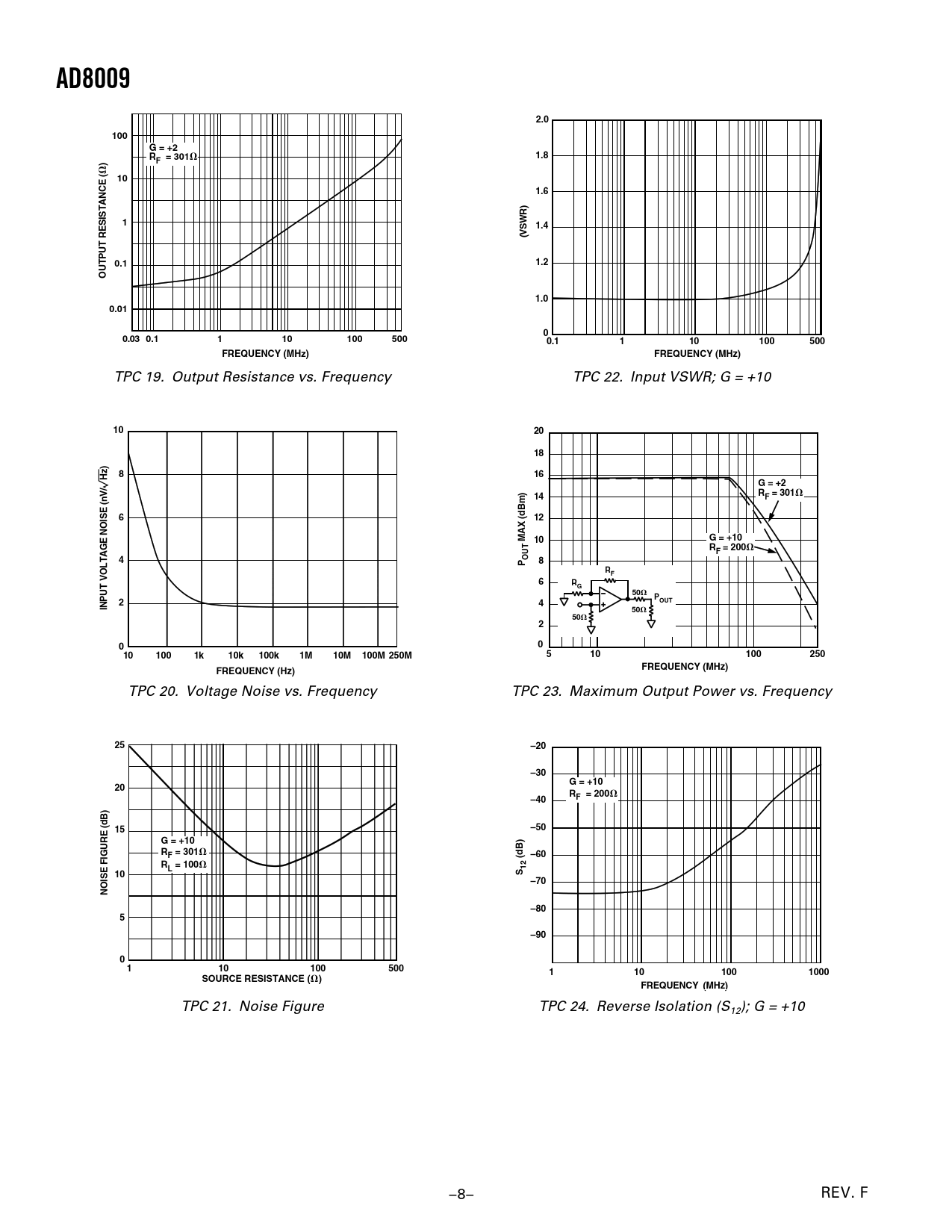 AD8009. 2.0. 100. G = +2 R. 1.8. F = 301. 1.6. 1.4. (VSWR. 0.1. 1.2. OUTPUT RESISTANCE (. 1.0. 0.01. 0.03 0.1. 500. FREQUENCY (MHz). Hz). G = +2. RF = 301