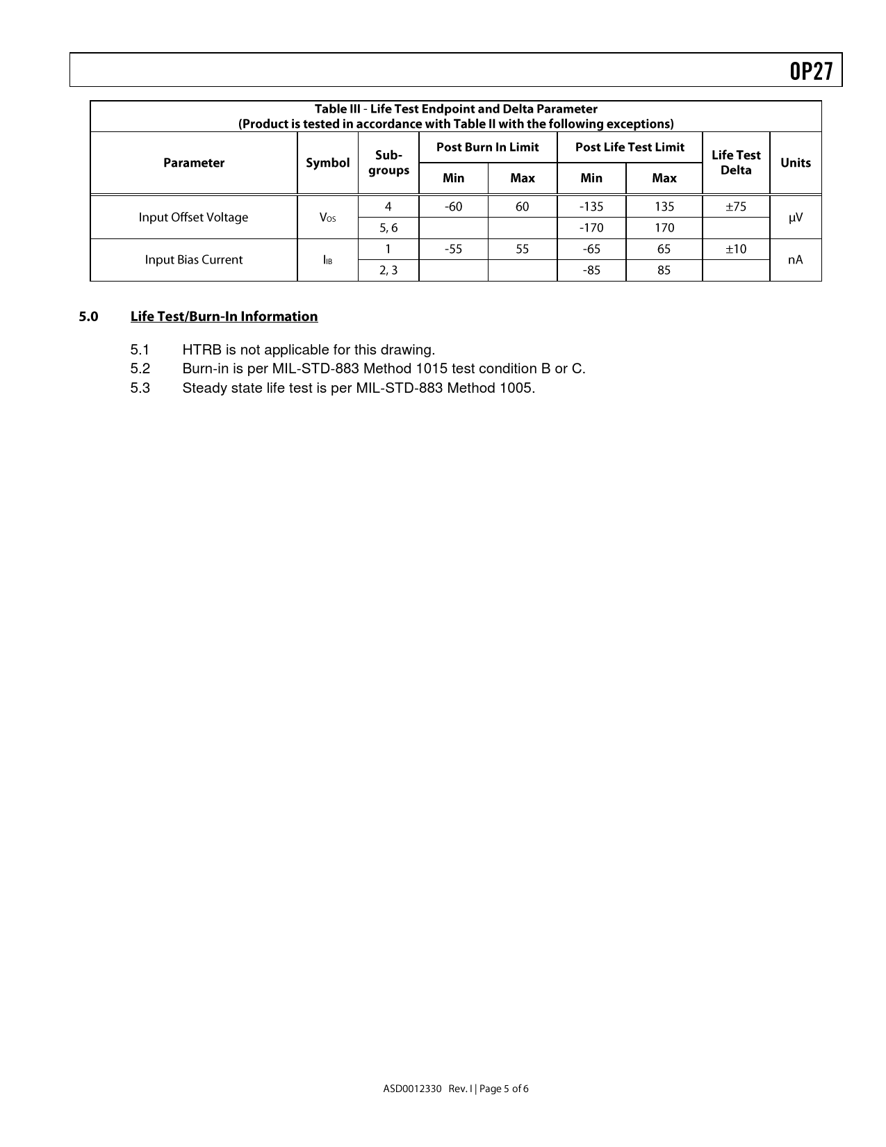 5.1. HTRB. is. not. applicable. for. this. drawing. 5.2. Burn-in. is. per. MIL-STD-883. Method. 1015. test. condition. B. or. C. 5.3. Steady. state. life. test. is. per
