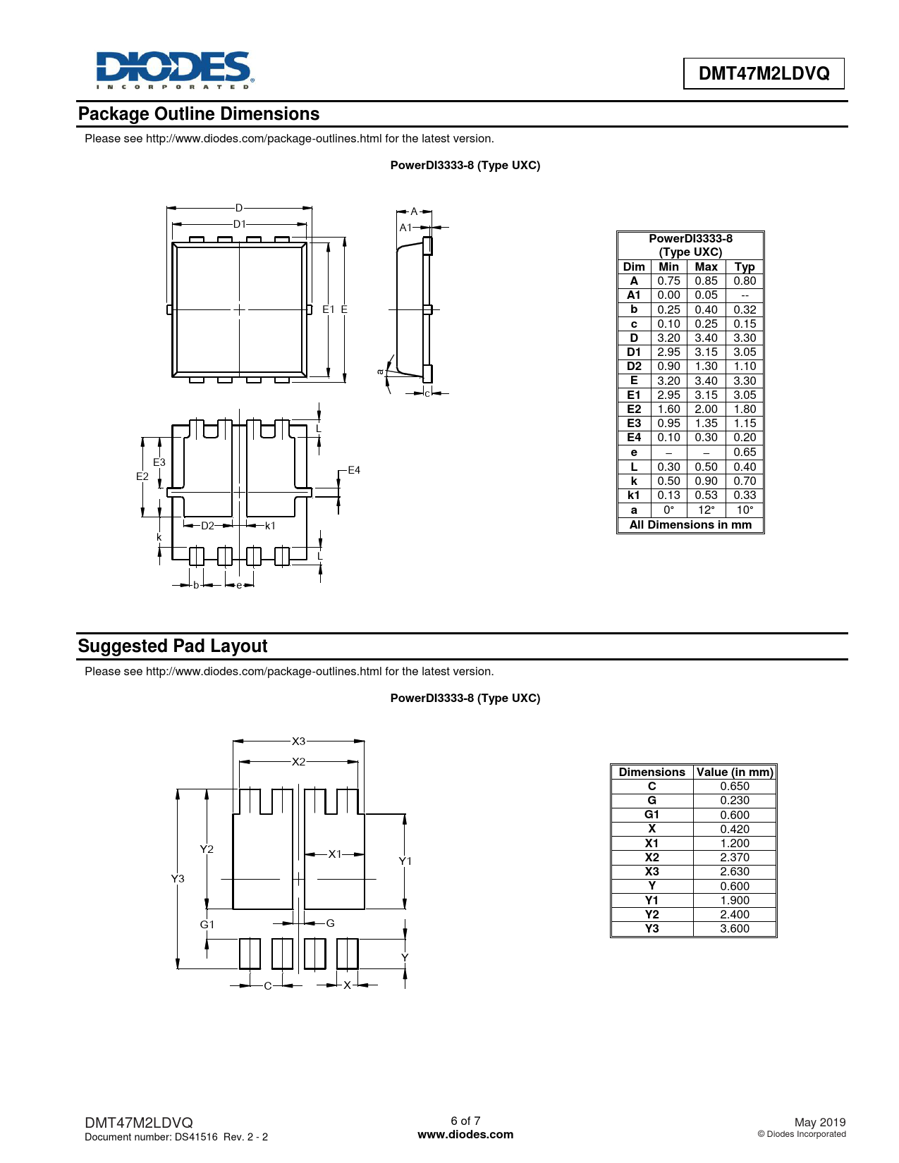 DMT47M2LDVQ. Package Outline Dimensions. PowerDI3333-8 (Type UXC). PowerDI3333-8. (Type UXC). Dim Min. Max. Typ. All Dimensions in mm