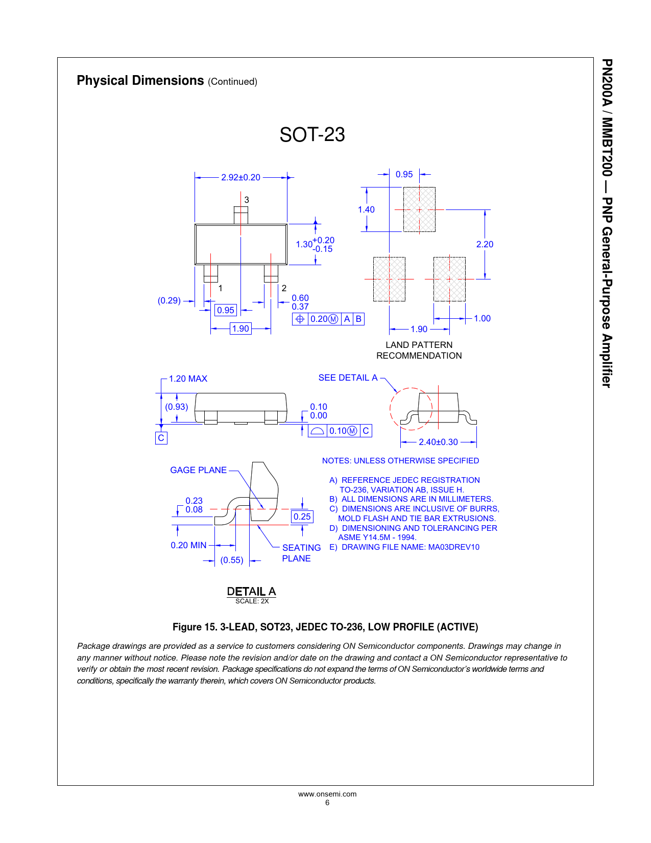 页数 / 页7 / 6 — PN200. Physical Dimensions. A / MMBT200 — PNP Ge. neral-. Pur. p ose Am. …