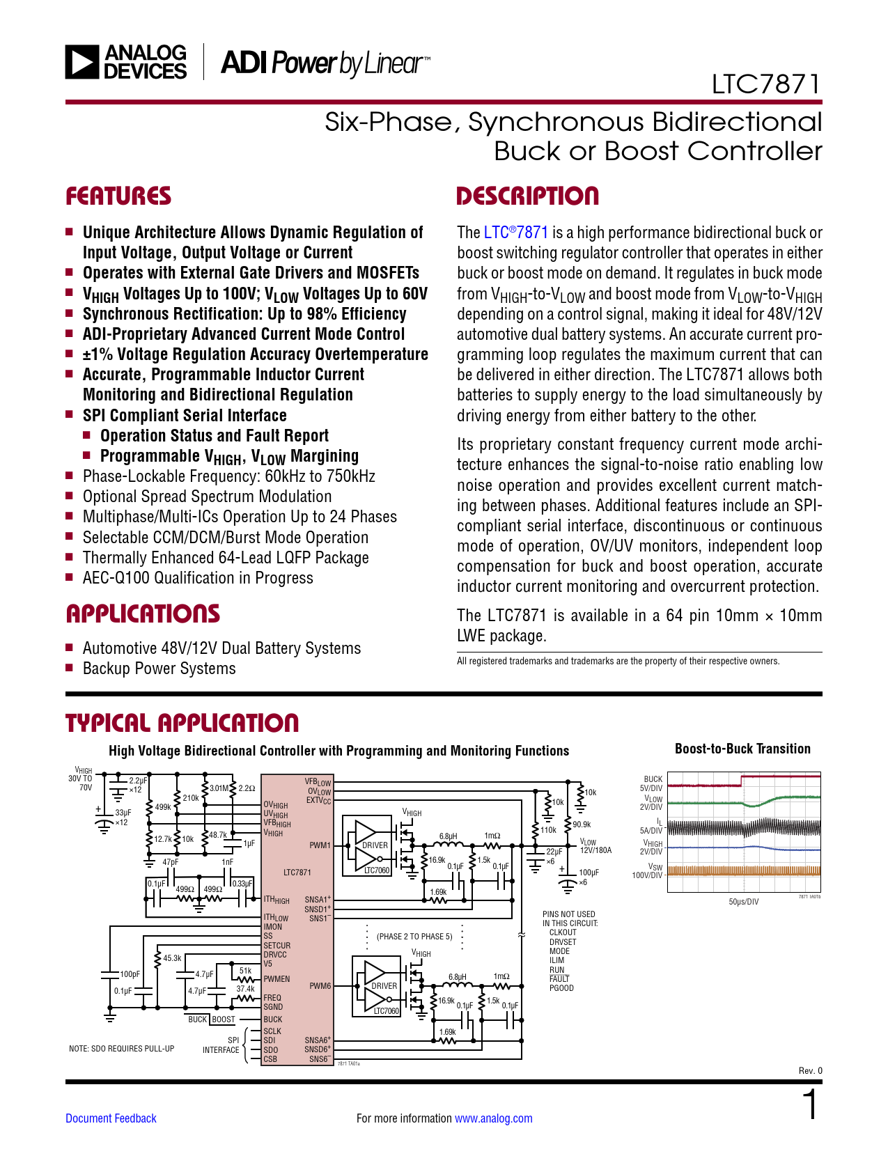 The LTC7871 is available in a 64 pin 10mm × 10mm LWE package. n Automotive 48V/12V Dual Battery Systems n Backup Power Systems All registered trademarks and trademarks are the property of their respective owners.