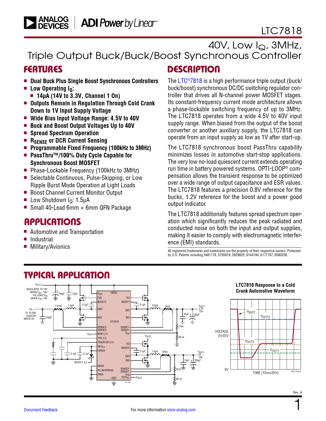 Datasheet LTC7818 Analog Devices, 修订版: A