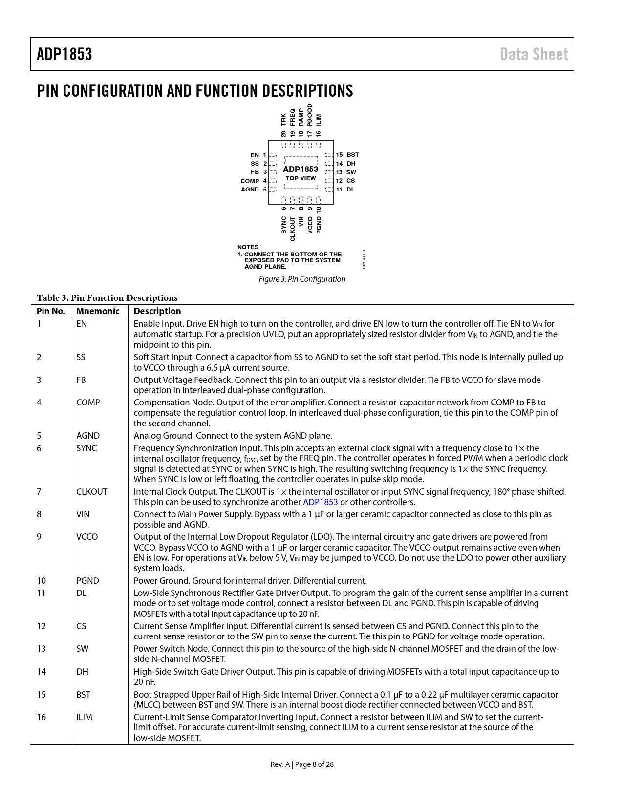 页数 / 页28 / 8 — ADP1853. Data Sheet. PIN CONFIGURATION AND FUNCTION DESCRIPTIONS. GOOD. …