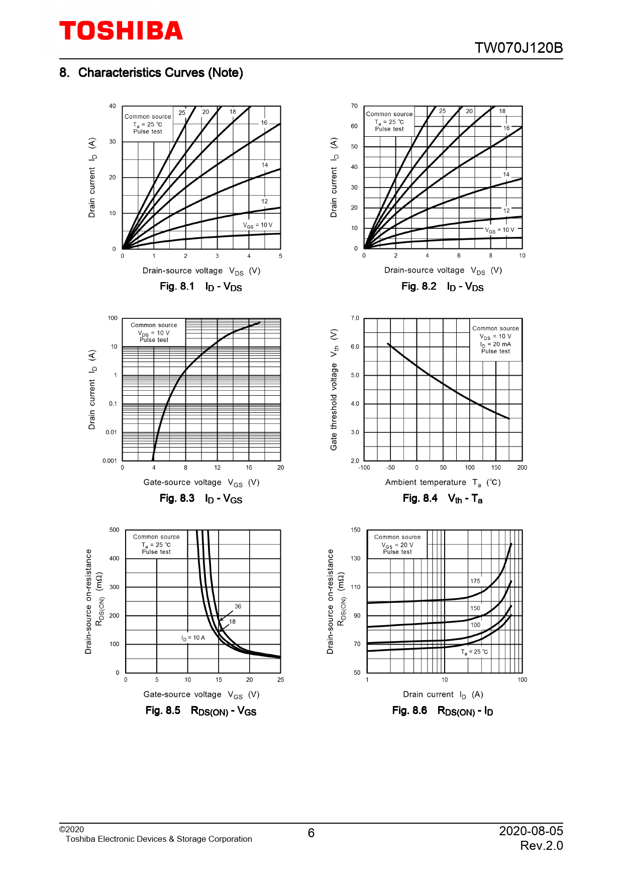 | 页数 / 页 | 10 / 6 — TW070J120B. 8. Characteristics. Curves. (Note). Fig. 8.1. ID. -. VDS. … |