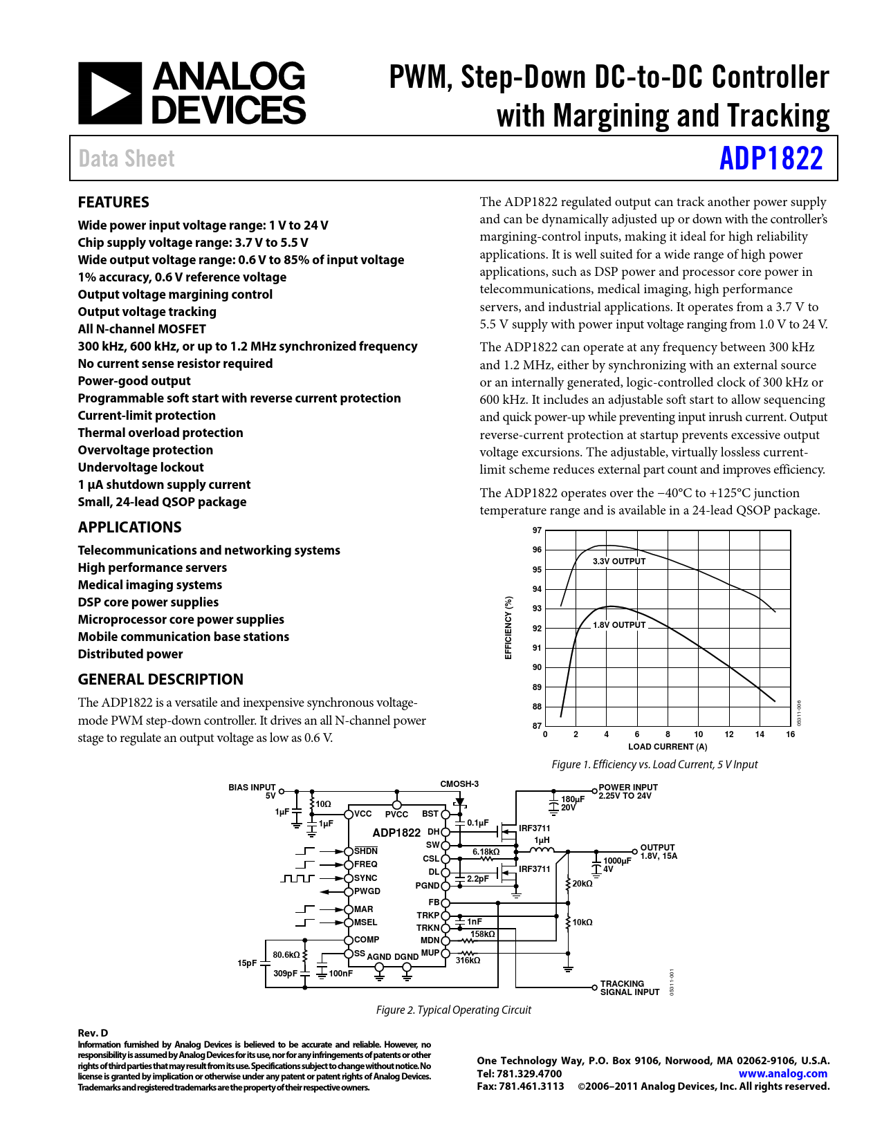 PWM, Step-Down DC-to-DC Controller. with Margining and Tracking. Data Sheet. ADP1822. FEATURES