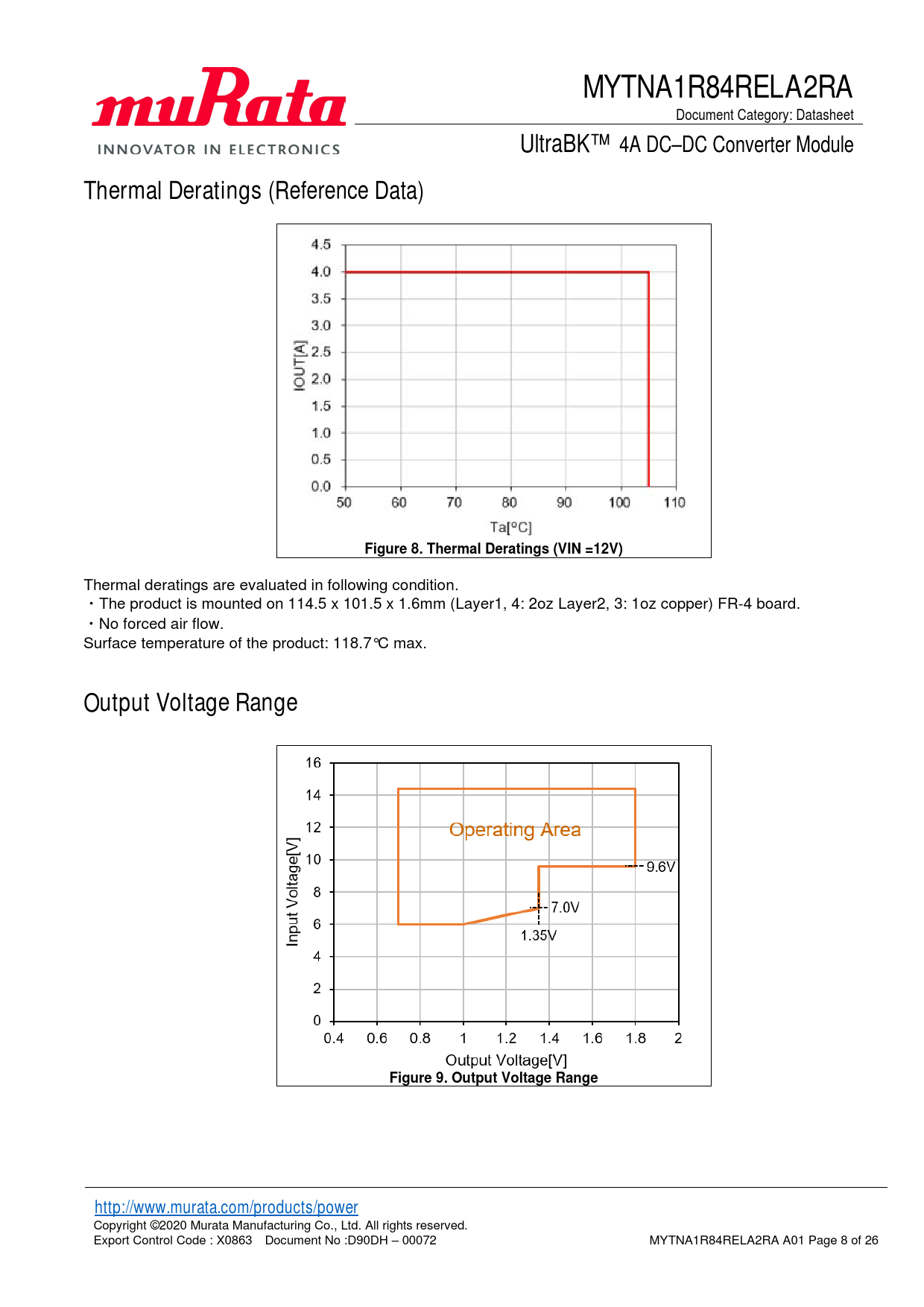MYTNA1R84RELA2RA. Thermal Deratings. Figure 8. Thermal Deratings (VIN =12V). Output Voltage Range