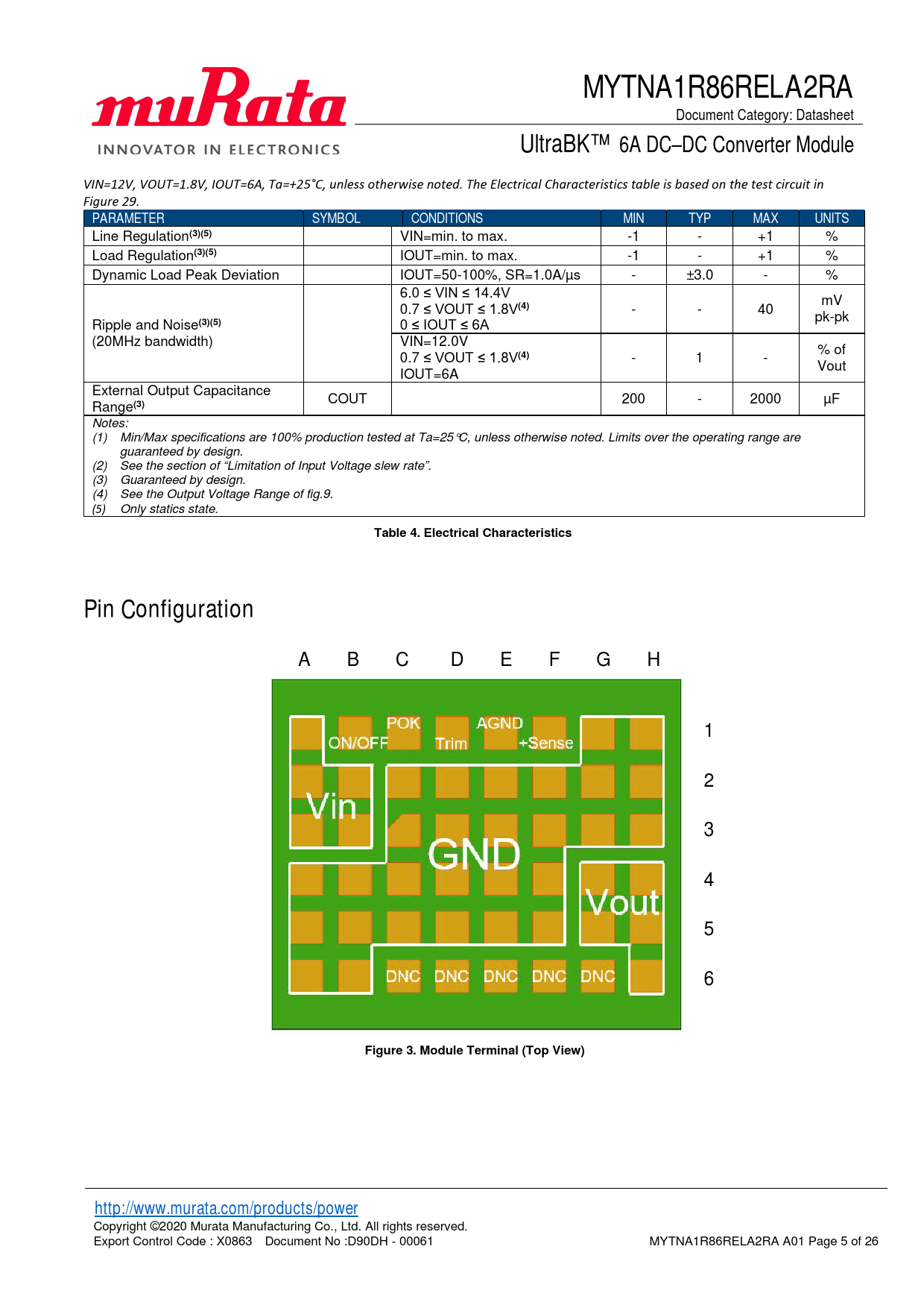 6 Figure 3. Module Terminal (Top View) http://www.murata.com/products/power