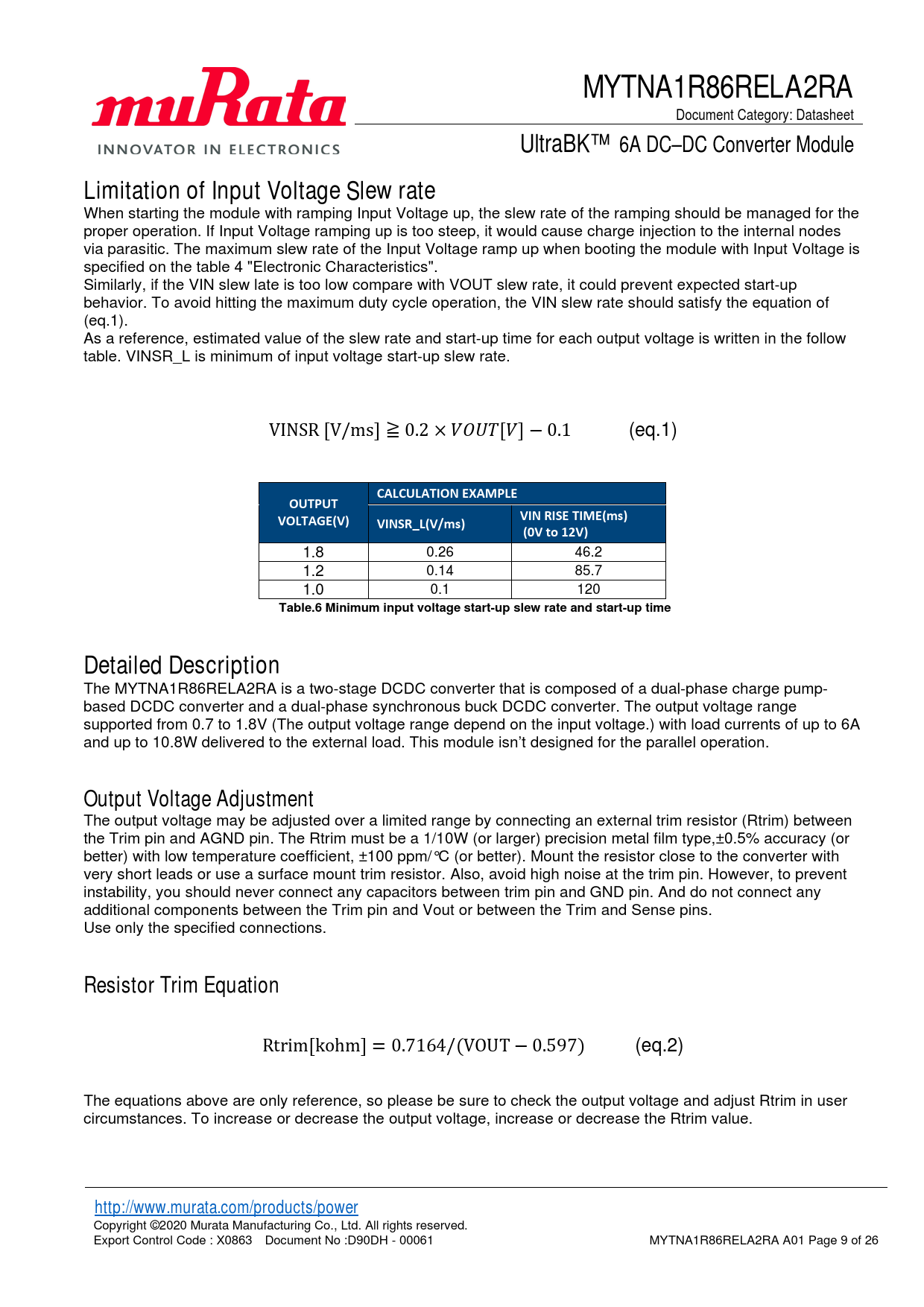 MYTNA1R86RELA2RA. Document Category: Datasheet UltraBK™ 6A DC–DC Converter Module. Limitation of Input Voltage Slew rate