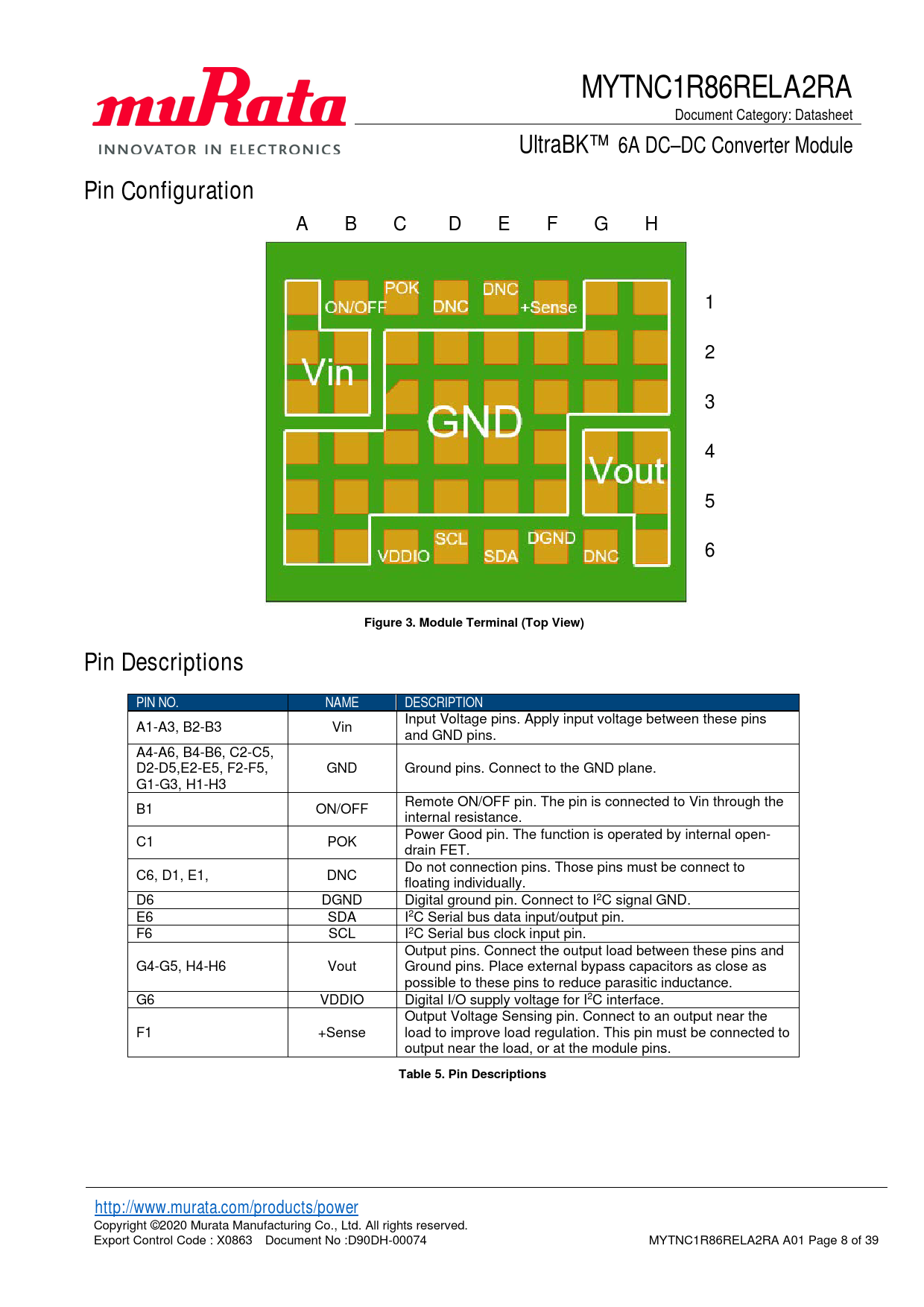 Table 5. Pin Descriptions http://www.murata.com/products/power