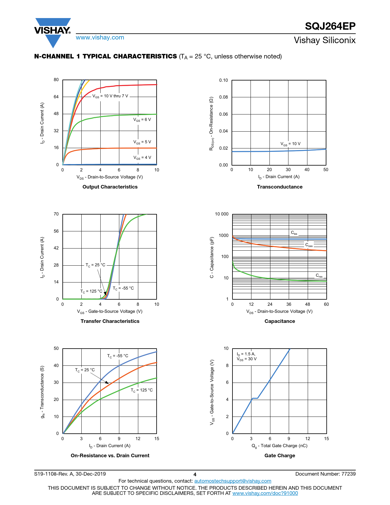 SQJ264EP. N-CHANNEL 1 TYPICAL CHARACTERISTICS. Output Characteristics. Transconductance. Transfer Characteristics. Capacitance