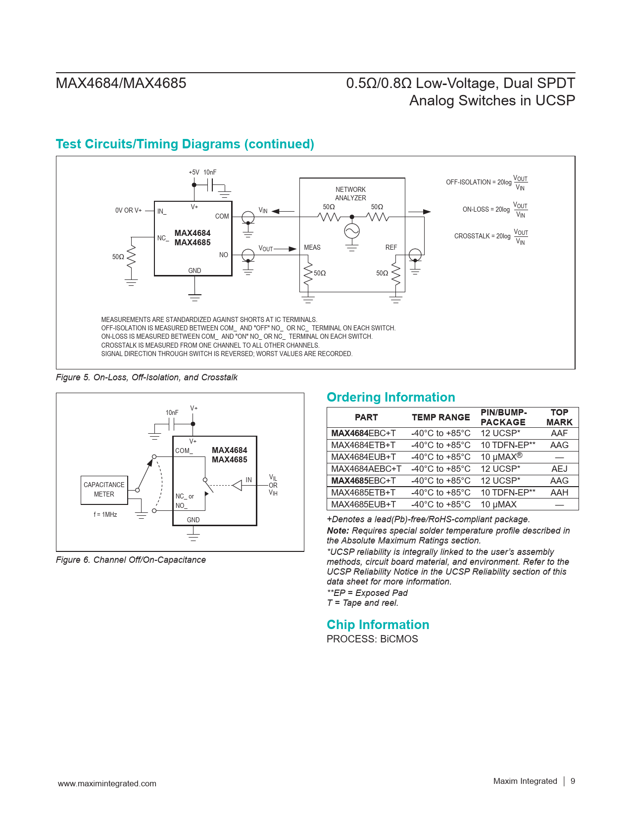 Test Circuits/Timing Diagrams (continued) MAX4684 MAX4685 Ordering Information PART TEMP RANGE PIN/BUMP- TOP PACKAGE MARK Note:
