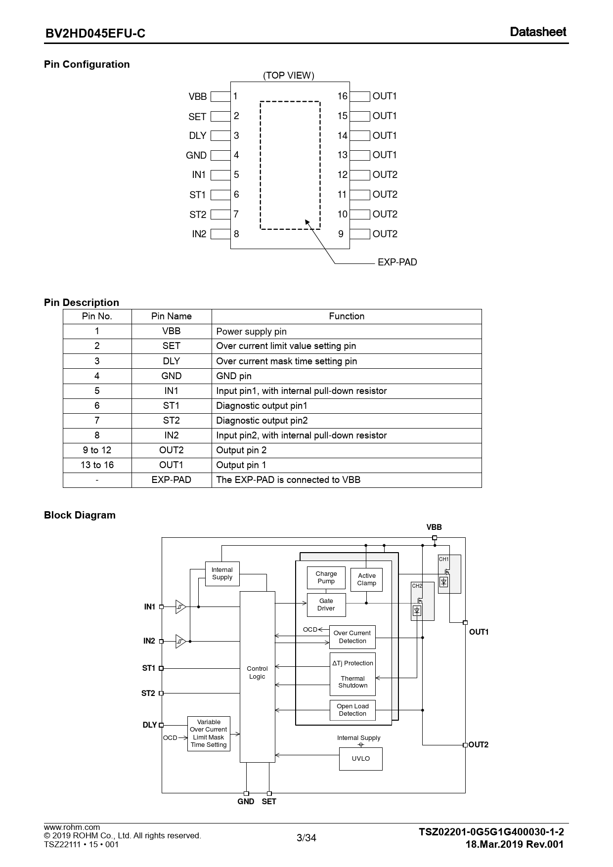| 页数 / 页 | 37 / 3 — BV2HD045EFU-C. Pin Configuration. Pin Description. Block Diagram. VBB. … |