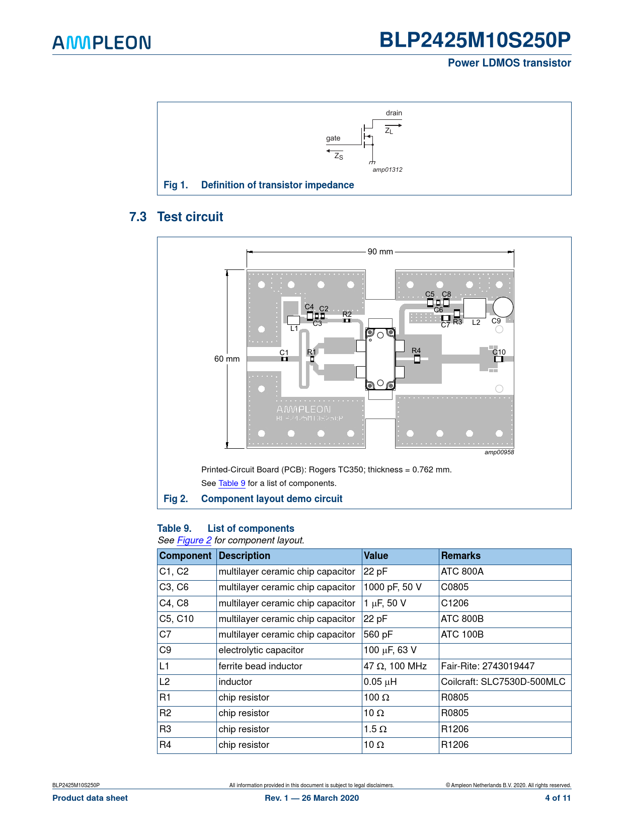 BLP2425M10S250P. Power LDMOS transistor. Fig 1. Definition of transistor impedance. 7.3 Test circuit. Fig 2
