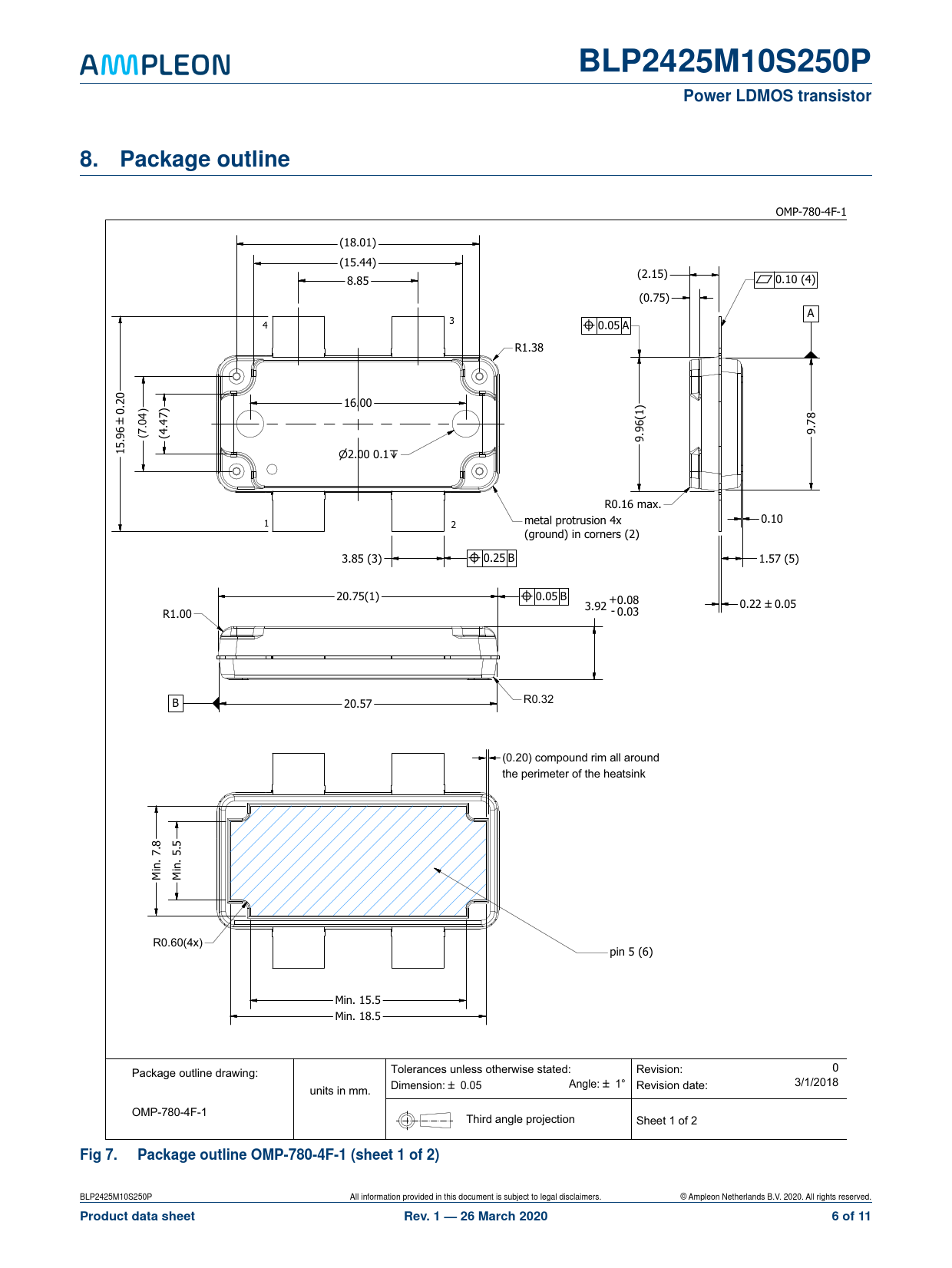 BLP2425M10S250P. Power LDMOS transistor. 8. Package. outline. Fig 7. Package outline OMP-780-4F-1 (sheet 1 of 2)