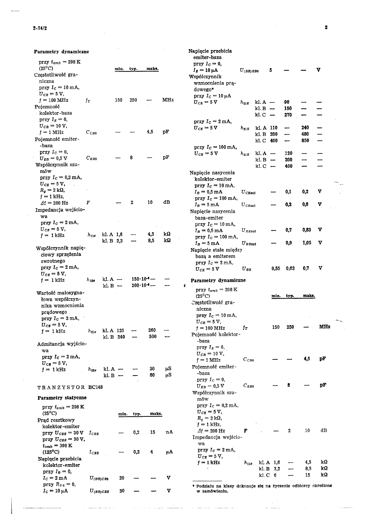 Datasheet BC147, BC148, BC149 (Unitra) - 2