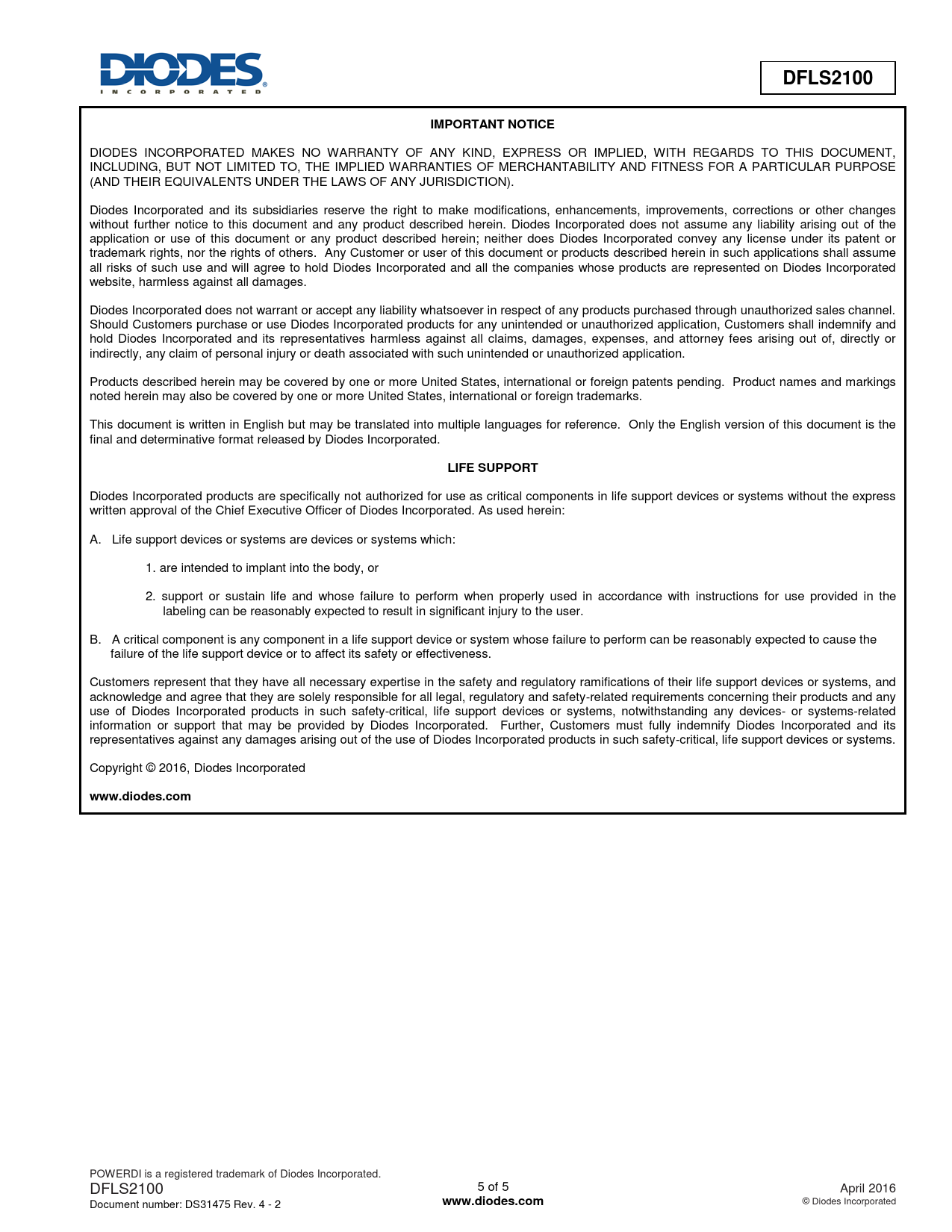 | 页数 / 页 | 5 / 5 — DFLS2100. IMPORTANT NOTICE. LIFE SUPPORT. www.diodes.com |