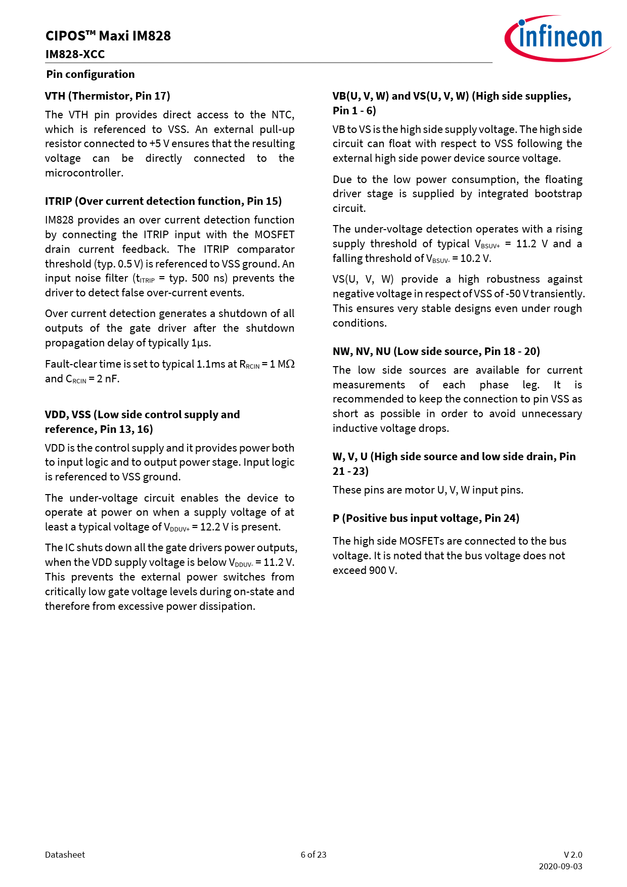 页数 / 页23 / 6 — CIPOS™ Maxi IM828. IM828-XCC. Pin configuration. VTH (Thermistor, Pin …