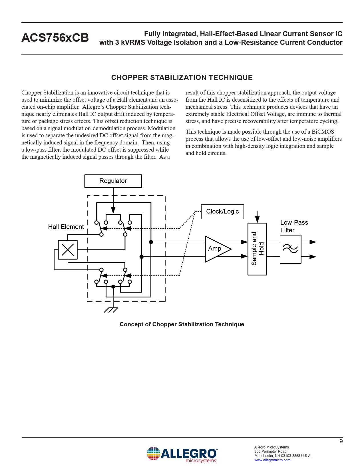 Fully Integrated, Hall-Effect-Based Linear Current Sensor IC ACS756xCB with 3 kVRMS Voltage Isolation and a Low-Resistance Current Conductor CHOPPER STABILIZATION TECHNIQUE