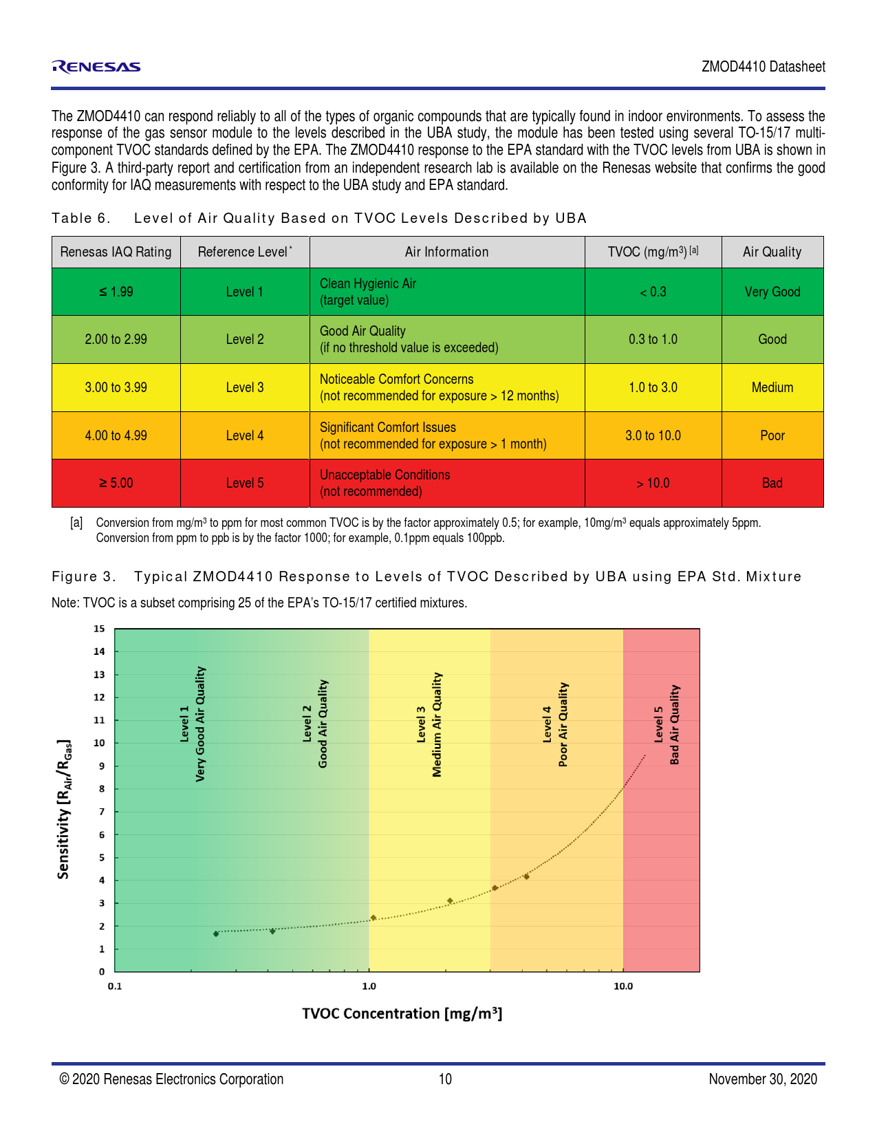 Table 6. Level of Air Quality Based on TVOC Levels Described by UBA Renesas IAQ Rating Reference Level* Air Information TVOC (mg/m3) [a] Air Quality