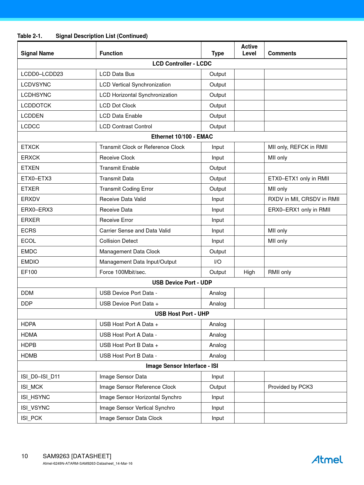 Table 2-1. Signal Description List (Continued) Active Signal Name Function Type Level Comments LCD Controller - LCDC