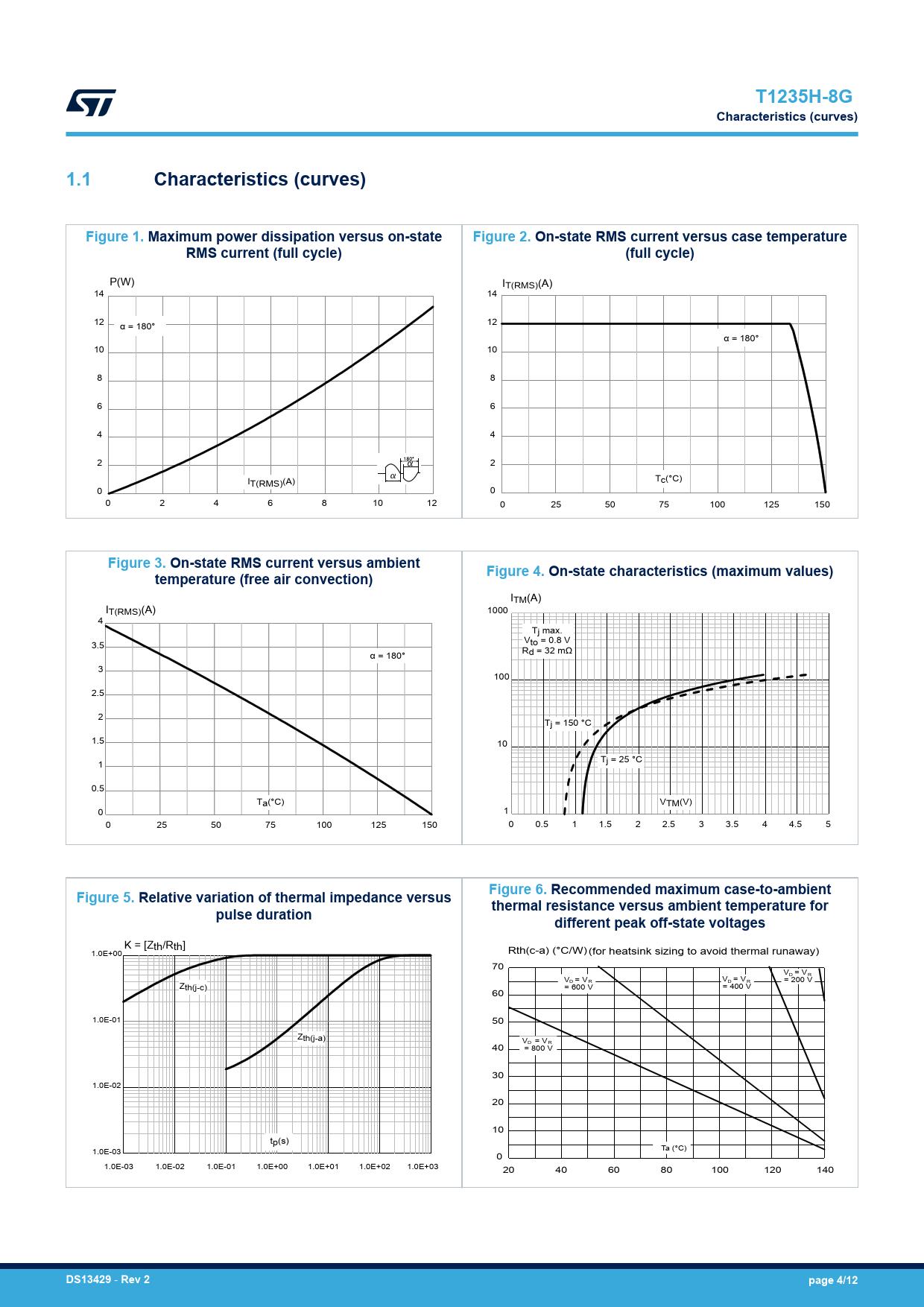 | 页数 / 页 | 12 / 4 — T1235H-8G. Characteristics (curves). 1.1. Figure 1. Maximum power … |