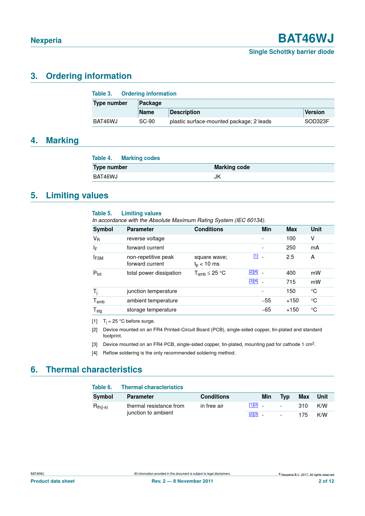 | 页数 / 页 | 12 / 2 — Nexperia. BAT46WJ. Single Schottky barrier diode. 3. Ordering. … |