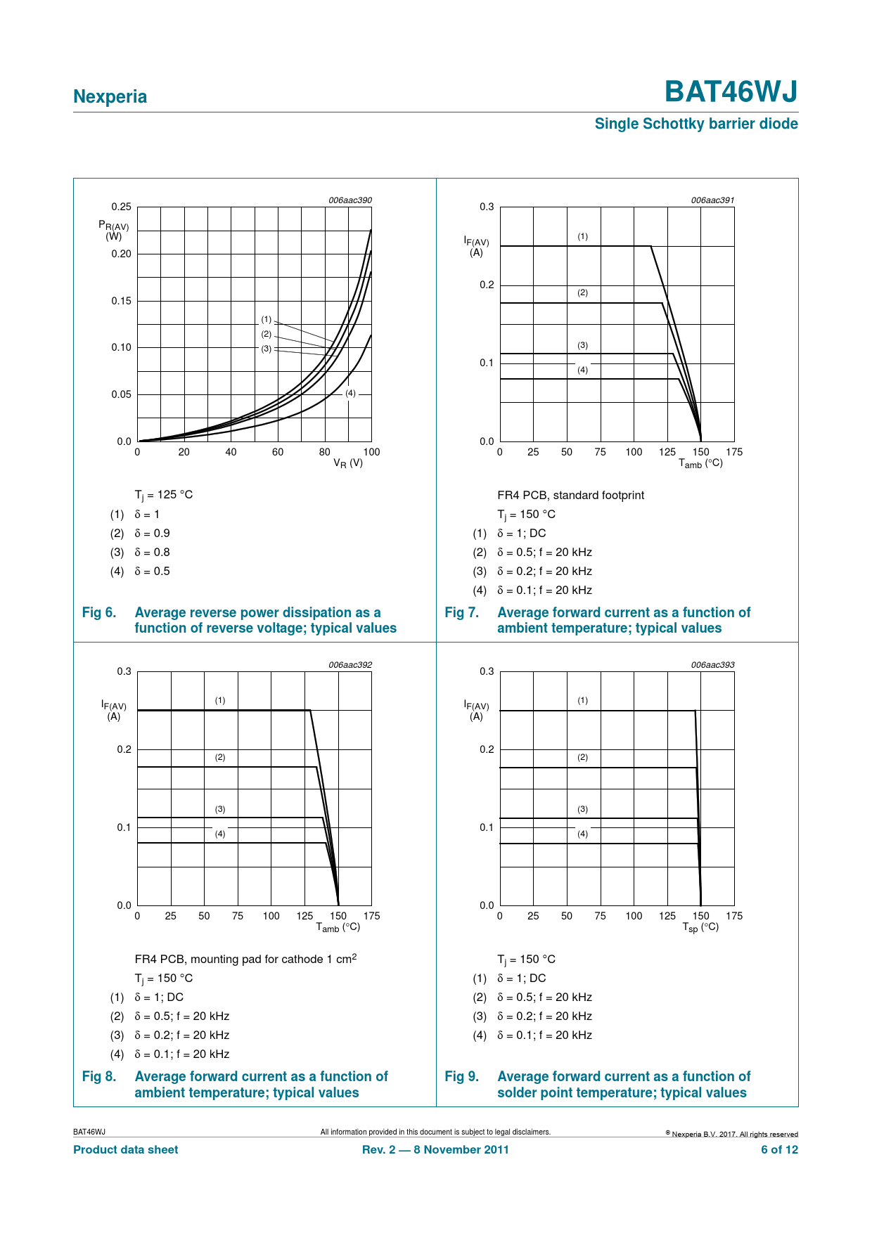 | 页数 / 页 | 12 / 6 — Nexperia. BAT46WJ. Single Schottky barrier diode. Fig 6. Average reverse … |