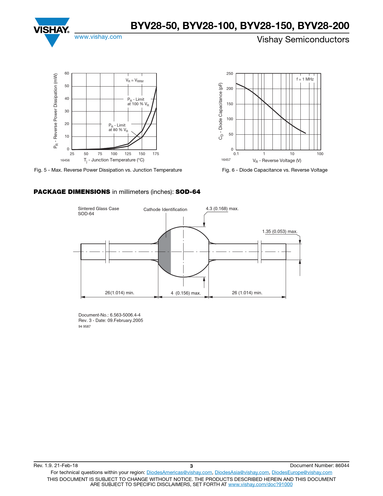 Sintered Glass Case Cathode Identification 4.3 (0.168) max. SOD-64 1.35 (0.053) max. 26(1.014) min. 4 (0.156) max. 26 (1.014) min. Document-No.: 6.563-5006.4-4 Rev. 3 - Date: 09.February.2005 94 9587 Rev. 1.9. 21-Feb-18