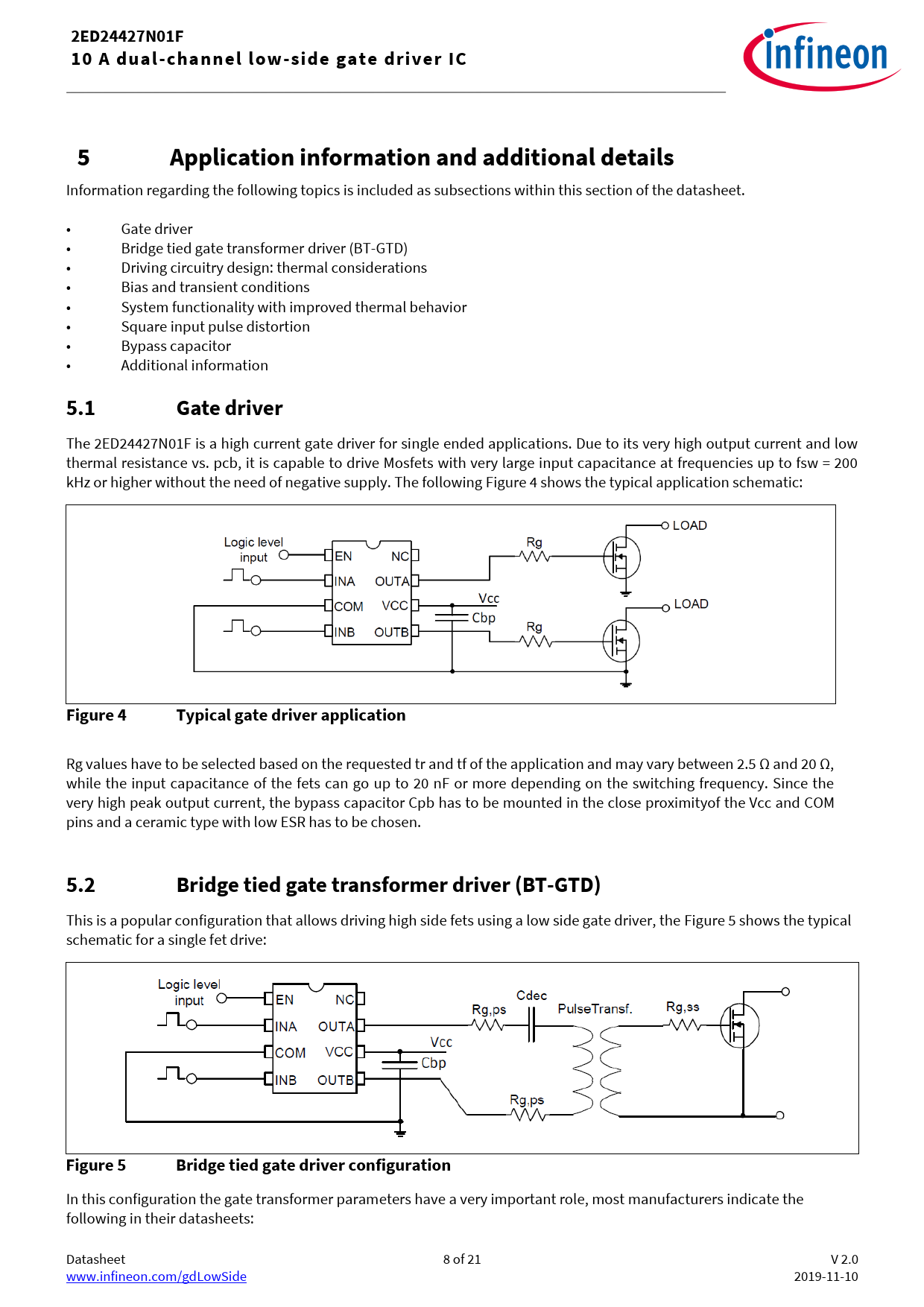 2ED24427N01F. 10 A dual-channel low-side gate driver IC. Application information and additional details. 5.1. Gate driver