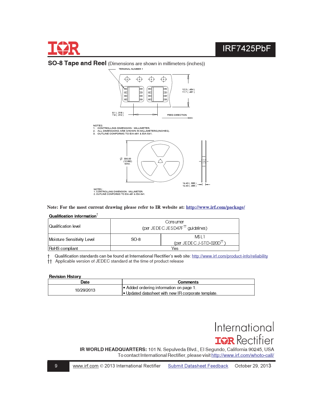 101 N. Sepulveda Blvd., El Segundo, California 90245, USA To contact International Rectifier, please visit http://www.irf.com/whoto-call/ 9 www.irf.com © 2013 International Rectifier Submit Datasheet Feedback October 29, 2013