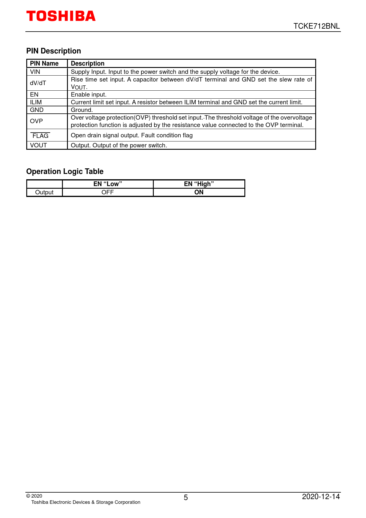 © 2020 5 2020-12-14 Toshiba Electronic Devices & Storage Corporation