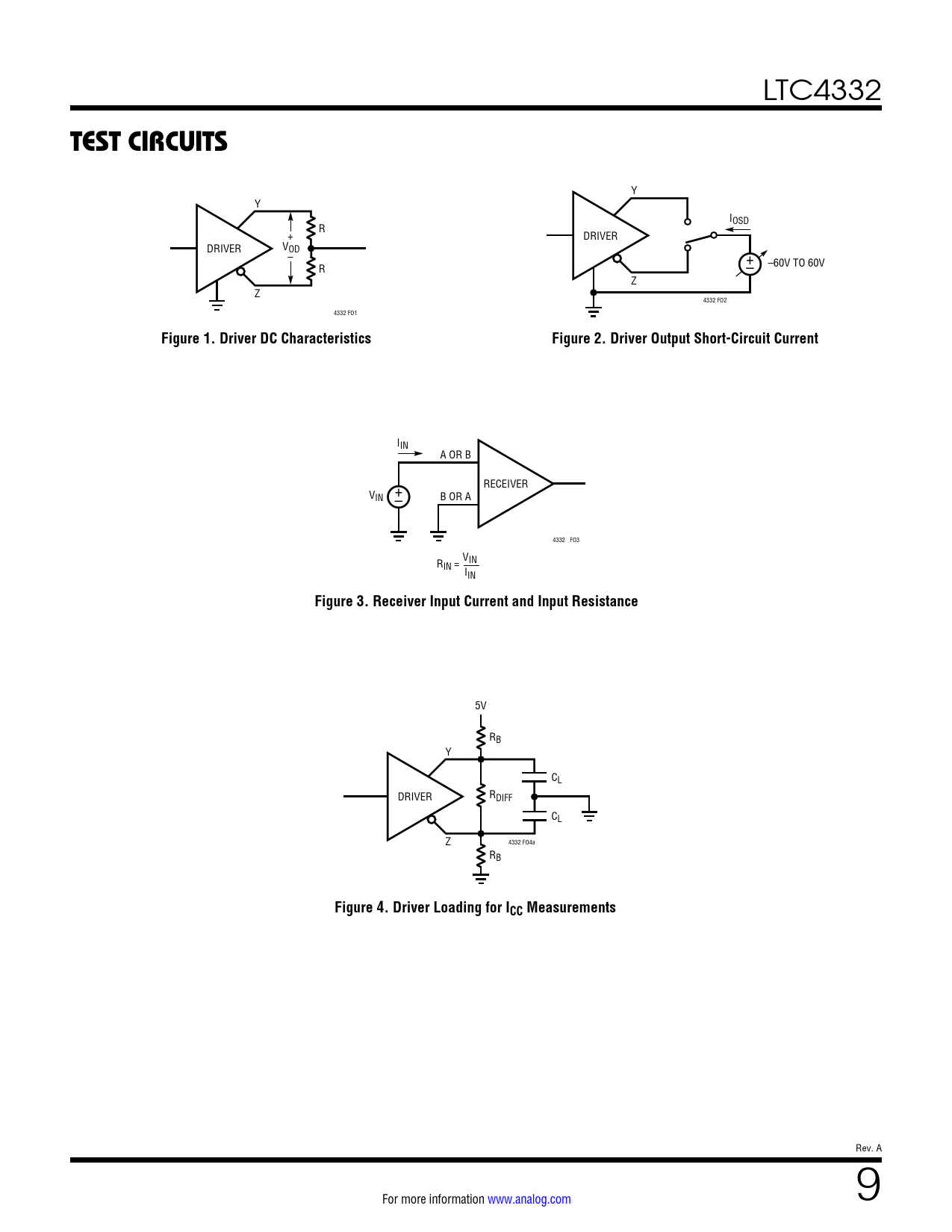 TEST CIRCUITS Figure 1 Driver DC Characteristics Figure 2 Driver Output Short-Circuit Current