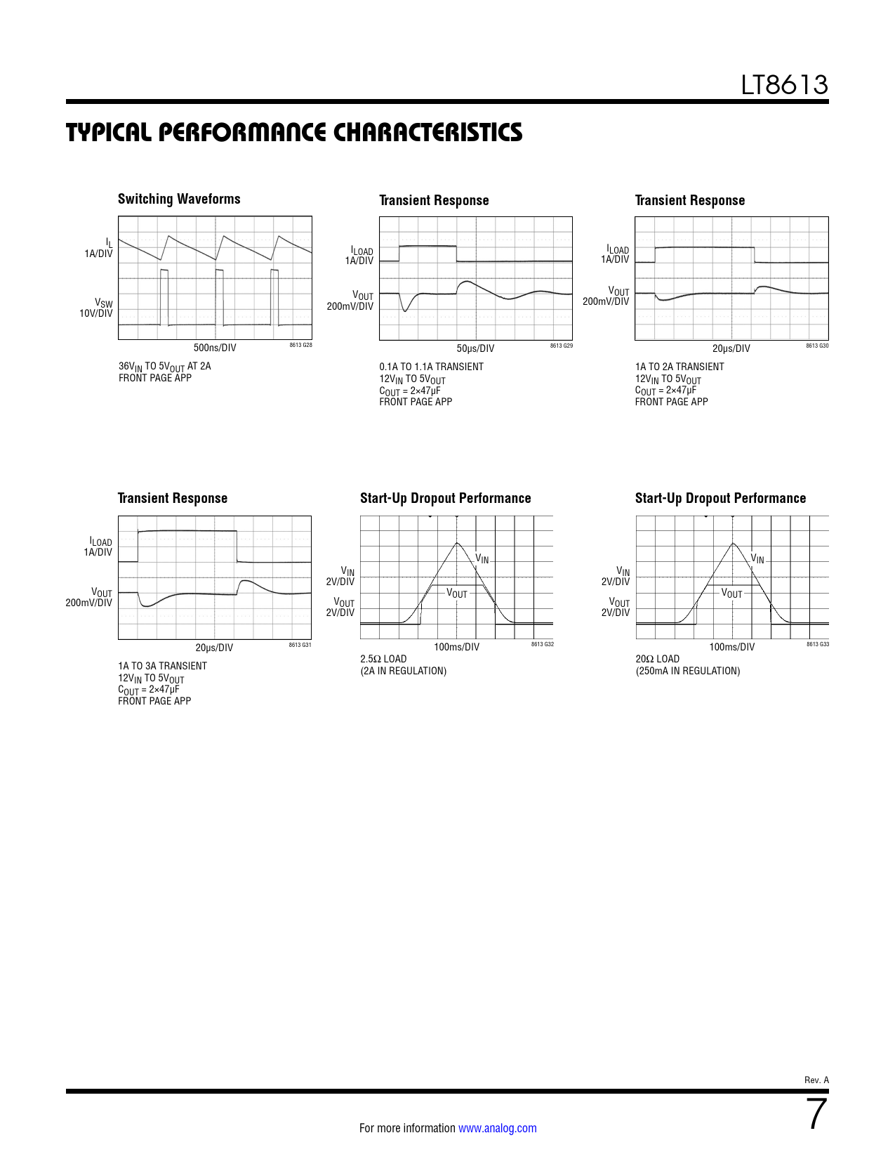 TYPICAL PERFORMANCE CHARACTERISTICS. Switching Waveforms. Transient Response. Start-Up Dropout Performance