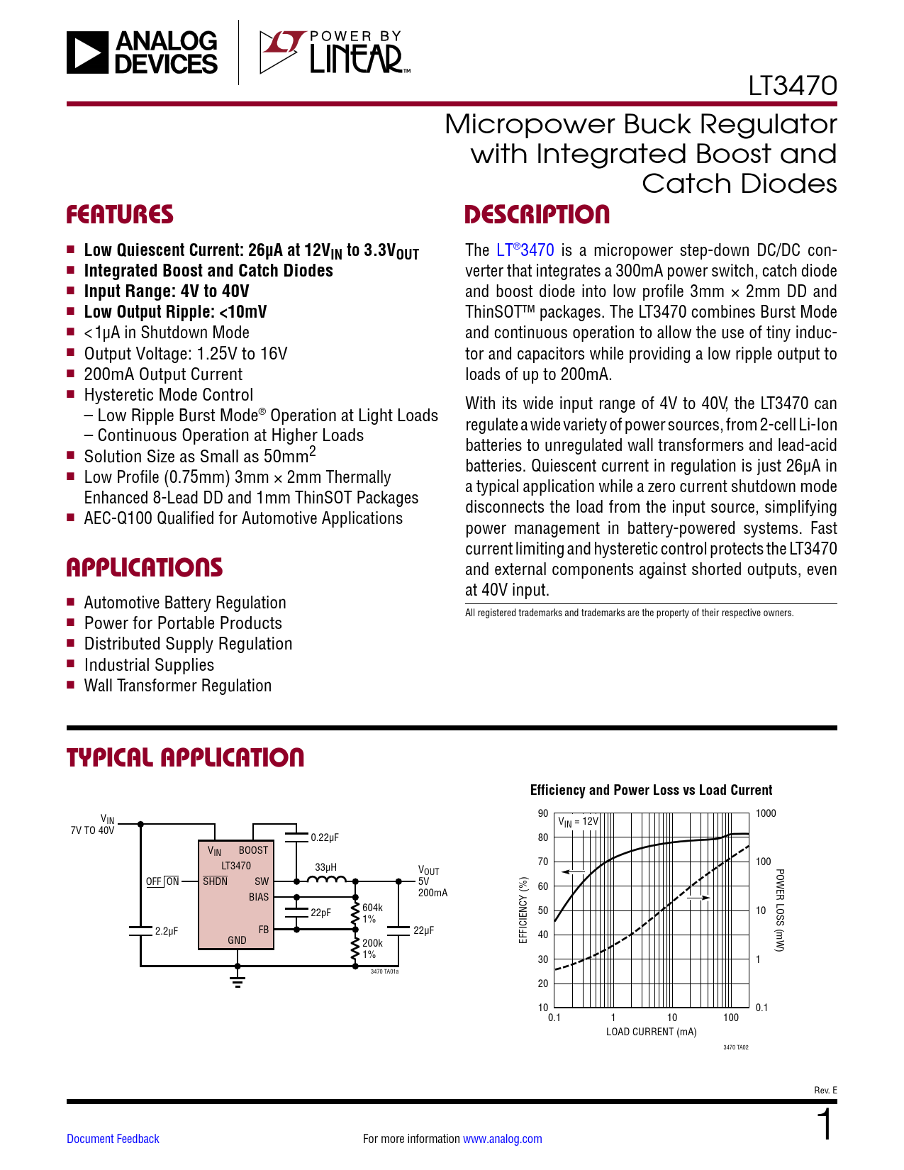 Datasheet LT3470 Analog Devices, 修订版: E