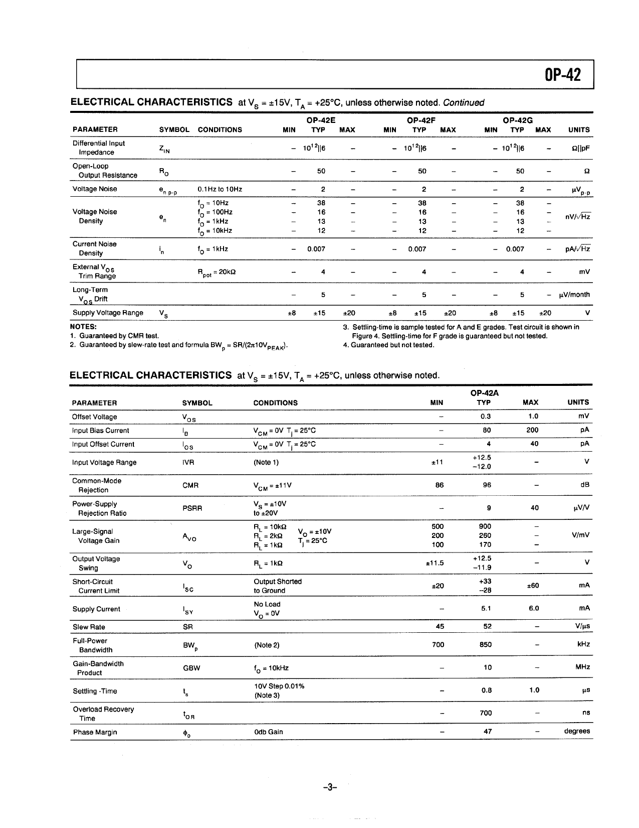 Datasheet OP-42 (Analog Devices) - 3