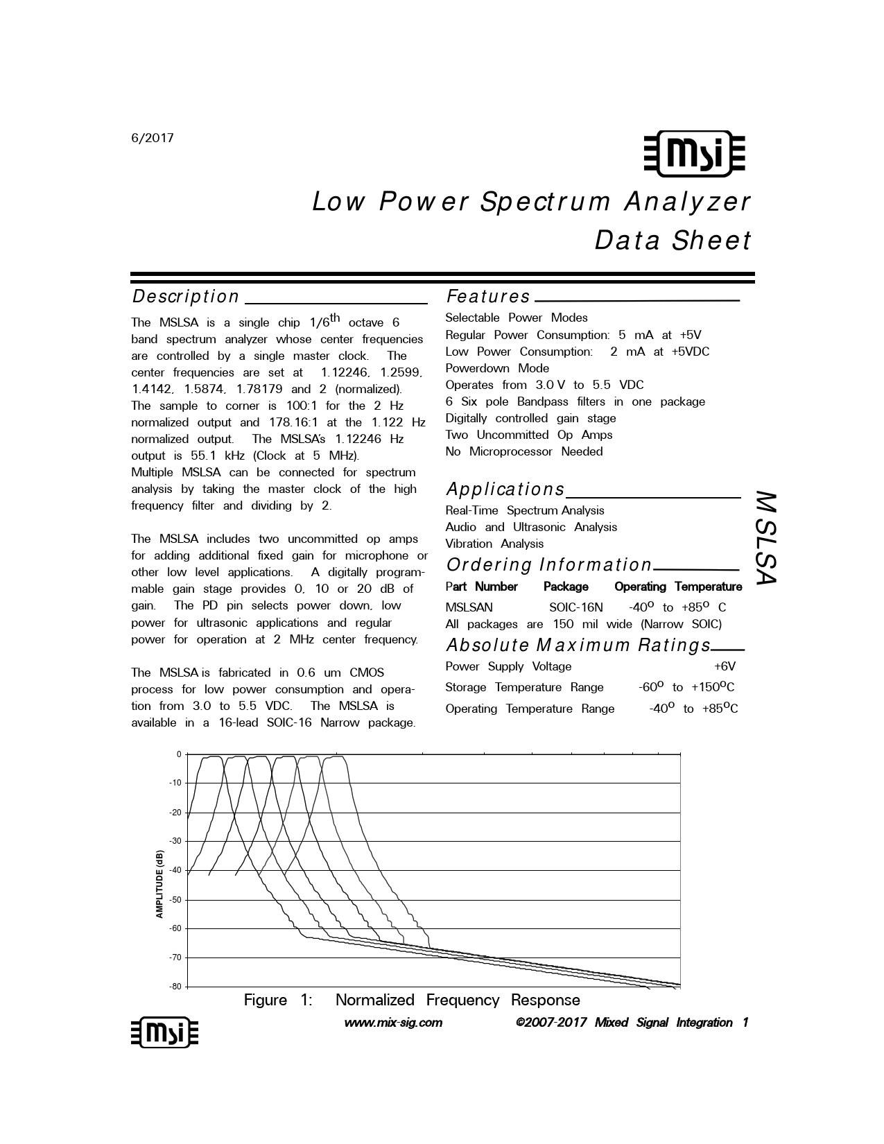 -60 -70 -80 Figure 1: Normalized Frequency Response www.mix-ssig.com ©2007-2 2017 Mixed Signal Integration 1