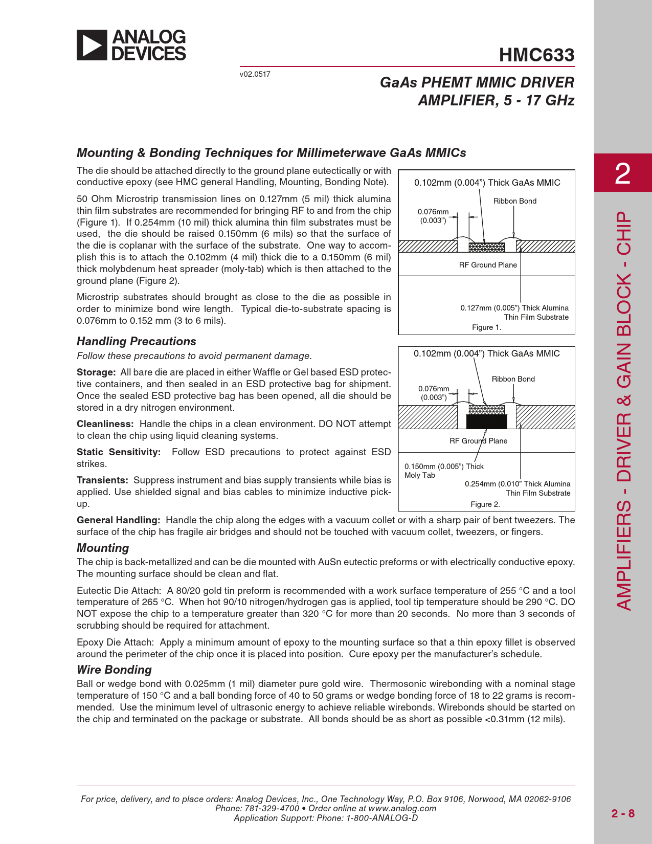 HMC633. GaAs PHEMT MMIC DRIVER. AMPLIFIER, 5 - 17 GHz. Mounting & Bonding Techniques for Millimeterwave GaAs MMICs