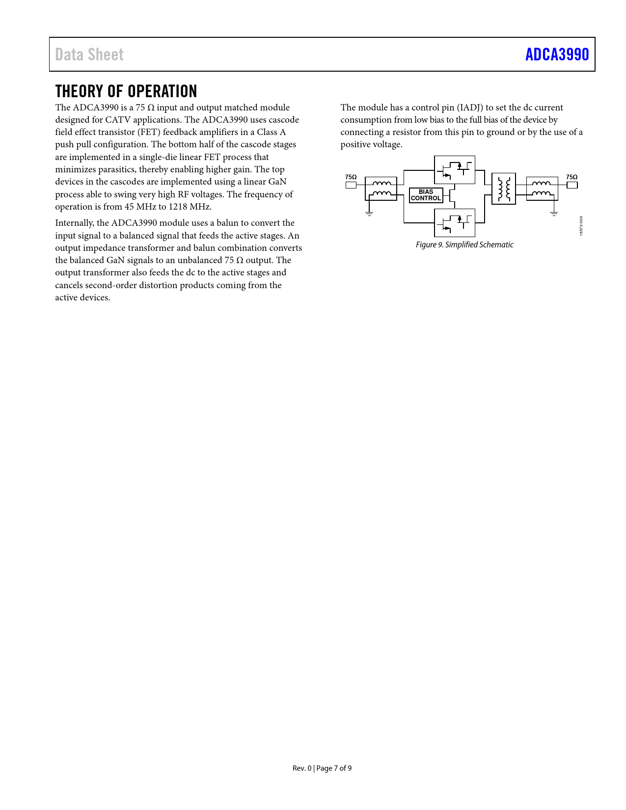 页数 / 页9 / 7 — Data Sheet. ADCA3990. THEORY OF OPERATION. 75Ω. BIAS. CONTROL