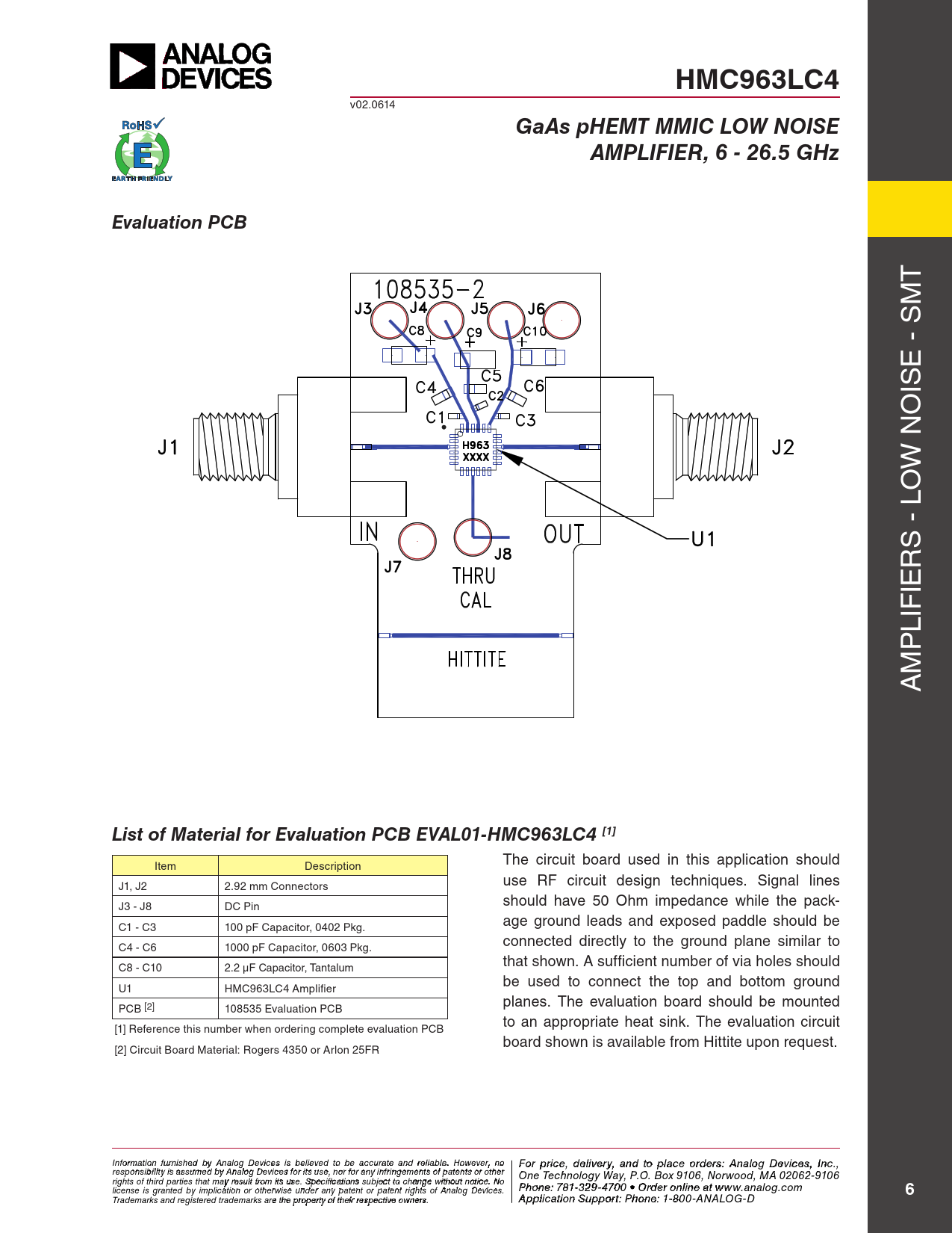 HMC963LC4. GaAs pHEMT MMIC LOW NOISE. AMPLIFIER, 6 - 26.5 GHz. Evaluation PCB