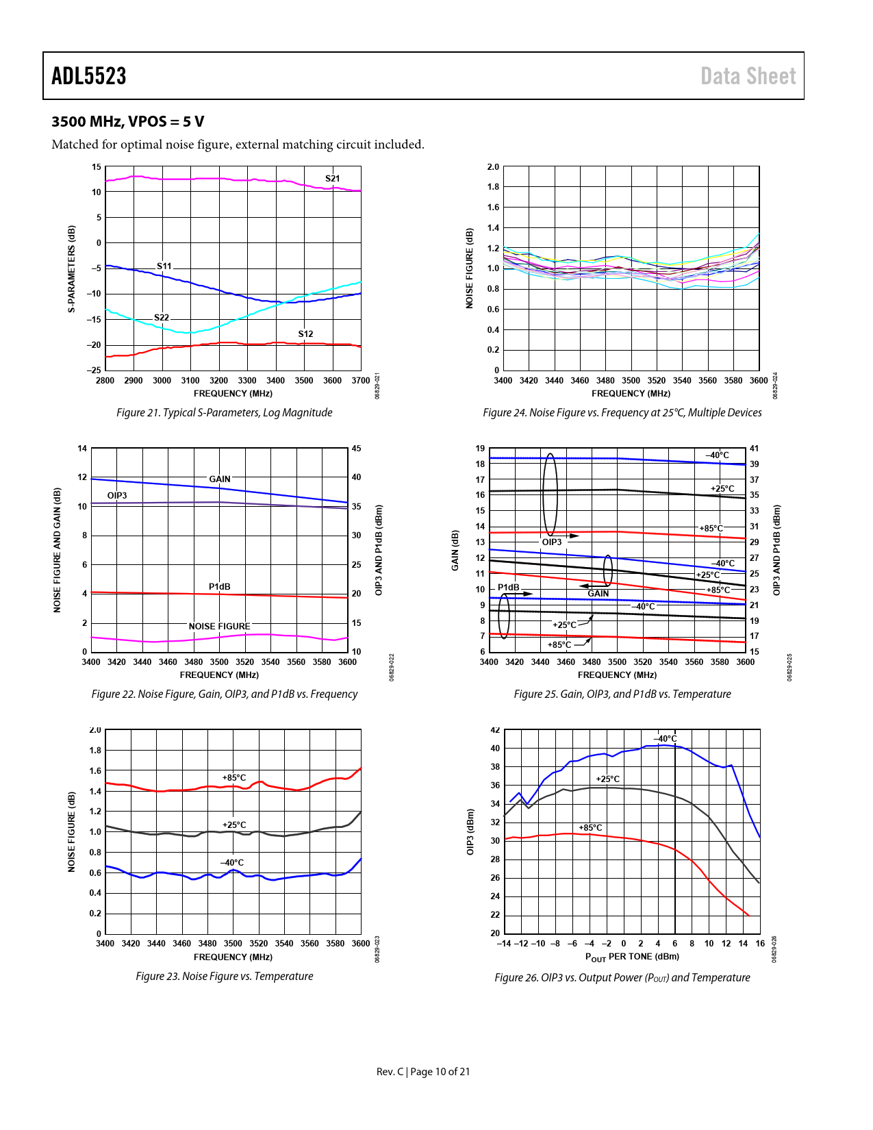 21 /10 — ADL5523. Data Sheet. 3500 MHz, VPOS = 5 V. 2.0. S21. 1.8. 1.6. ) B. 1.4. …