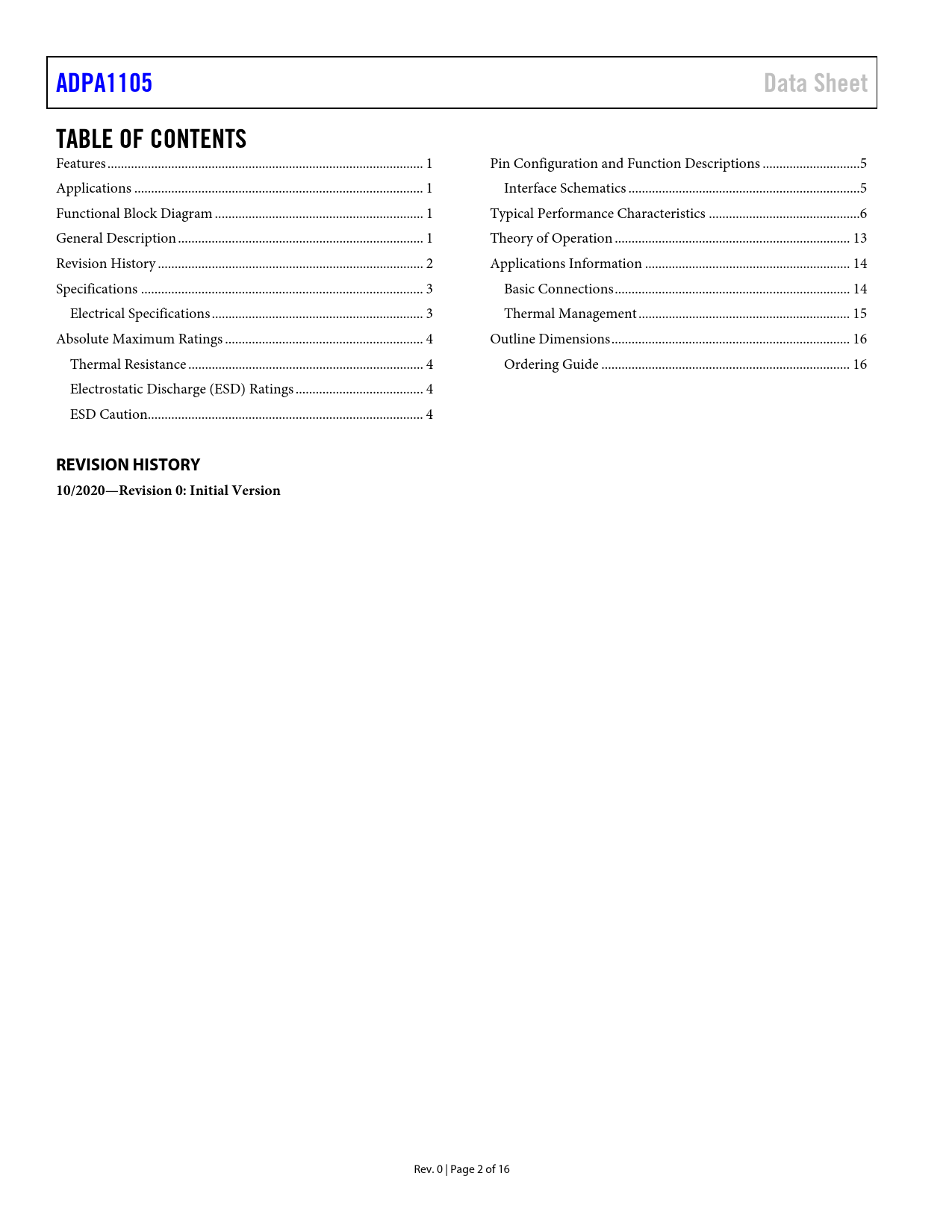 页数 / 页16 / 2 — ADPA1105. Data Sheet. TABLE OF CONTENTS. REVISION HISTORY. …