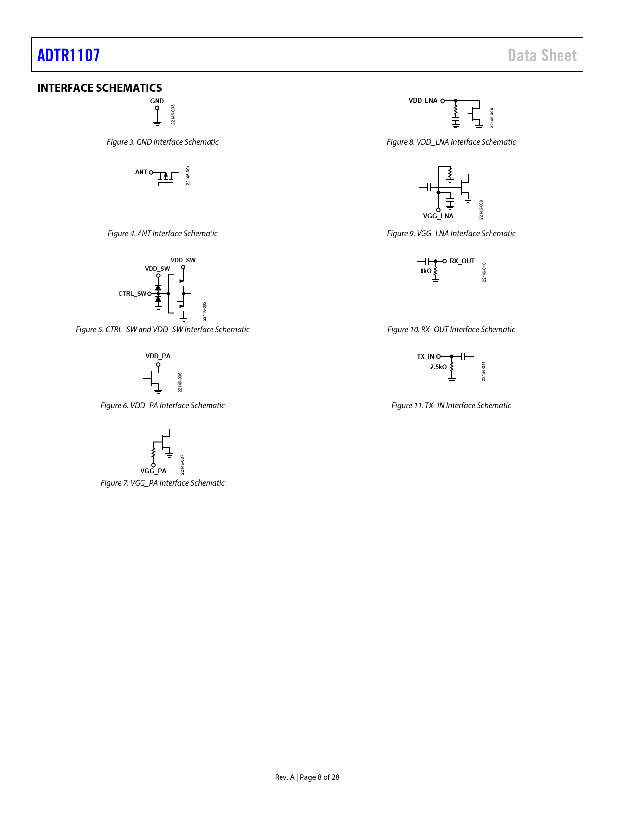 | 页数 / 页 | 28 / 8 — ADTR1107. Data Sheet. INTERFACE SCHEMATICS. GND. VDD_LNA. ANT. VGG_LNA. … |