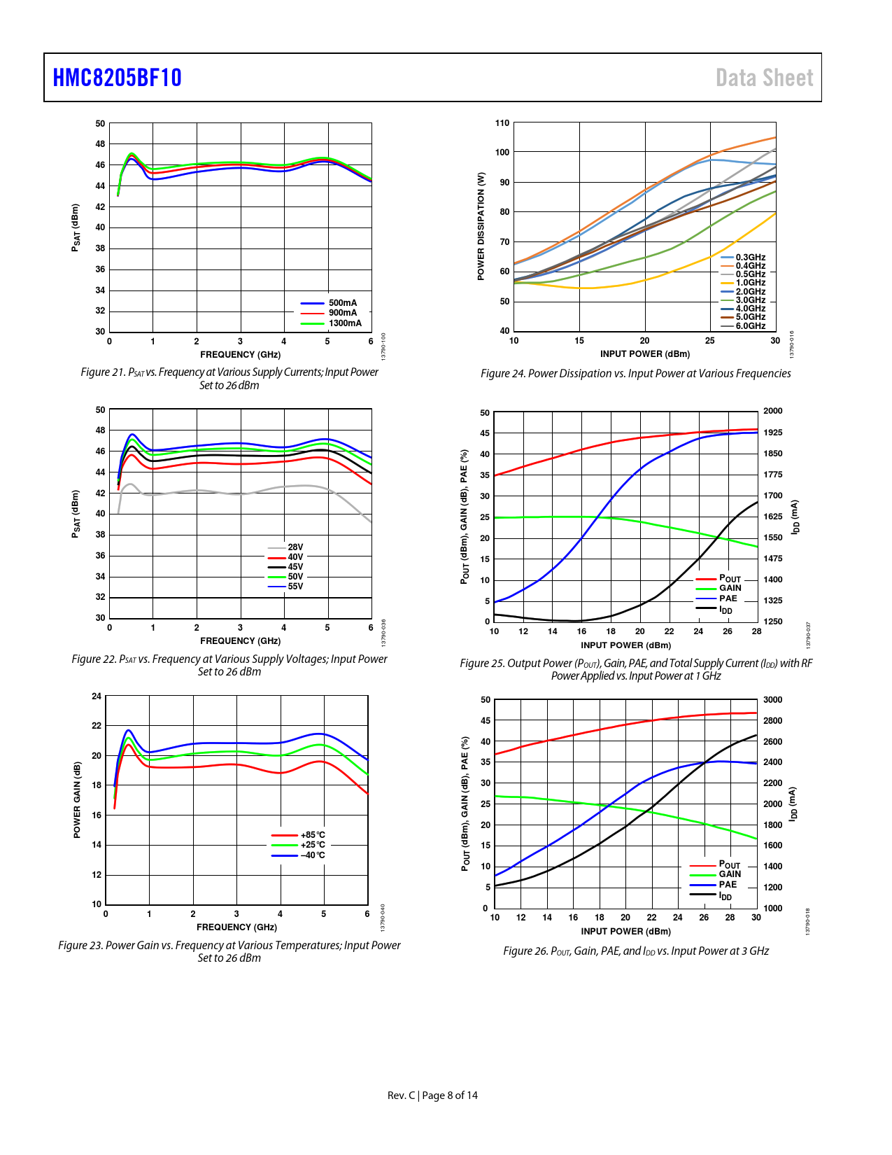 HMC8205BF10. Data Sheet. 110. 100. (W N IO. Bm) d. ISSI. D ER. 0.3GHz. 0.4GHz. 0.5GHz 1.0GHz. 2.0GHz. 500mA. 3.0GHz. 4.0GHz. 900mA. 5.0GHz. 1300mA. 6.0GHz