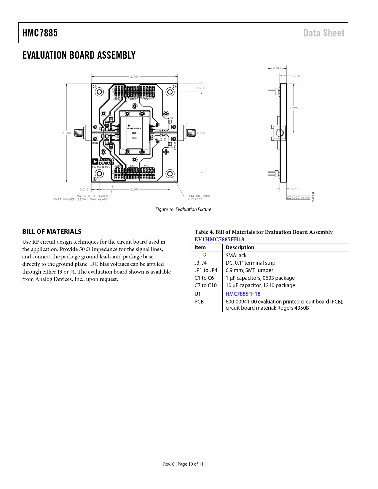 HMC7885. Data Sheet. EVALUATION BOARD ASSEMBLY. BILL OF MATERIALS. Table 4. Bill of Materials for Evaluation Board Assembly