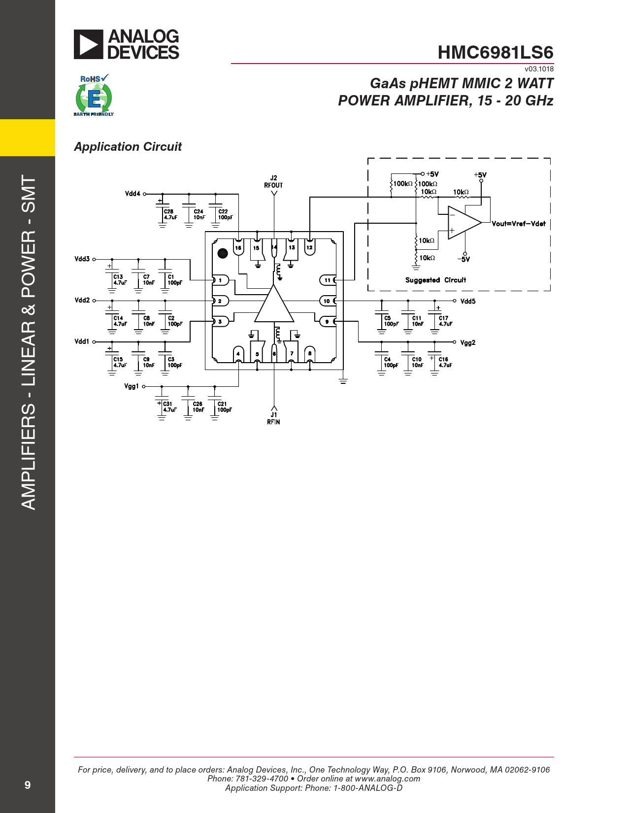 HMC6981LS6. GaAs pHEMT MMIC 2 WATT. POWER AMPLIFIER, 15 - 20 GHz. Application Circuit