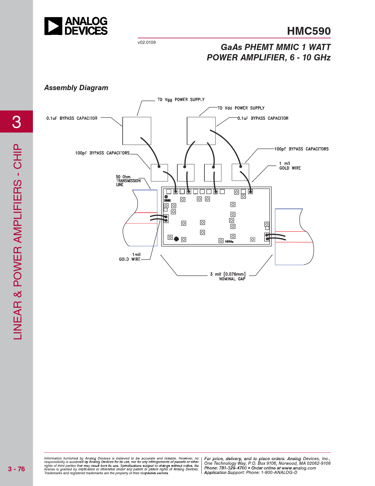HMC590. GaAs PHEMT MMIC 1 WATT. POWER AMPLIFIER, 6 - 10 GHz. Assembly Diagram. 3 - 76