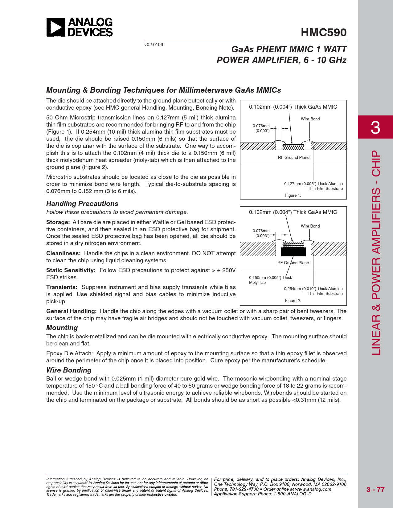 HMC590. GaAs PHEMT MMIC 1 WATT. POWER AMPLIFIER, 6 - 10 GHz. Mounting & Bonding Techniques for Millimeterwave GaAs MMICs