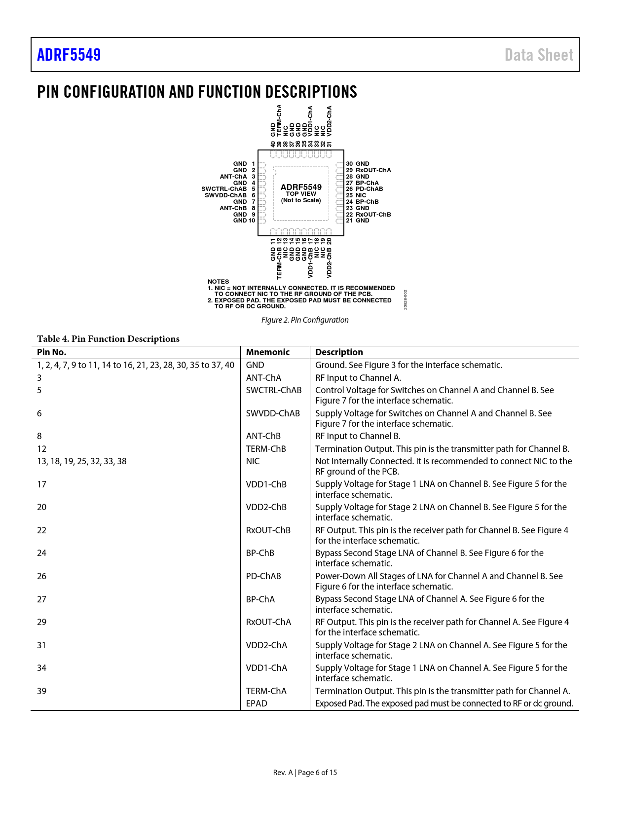 页数 / 页15 / 6 — ADRF5549. Data Sheet. PIN CONFIGURATION AND FUNCTION DESCRIPTIONS. M-C. …