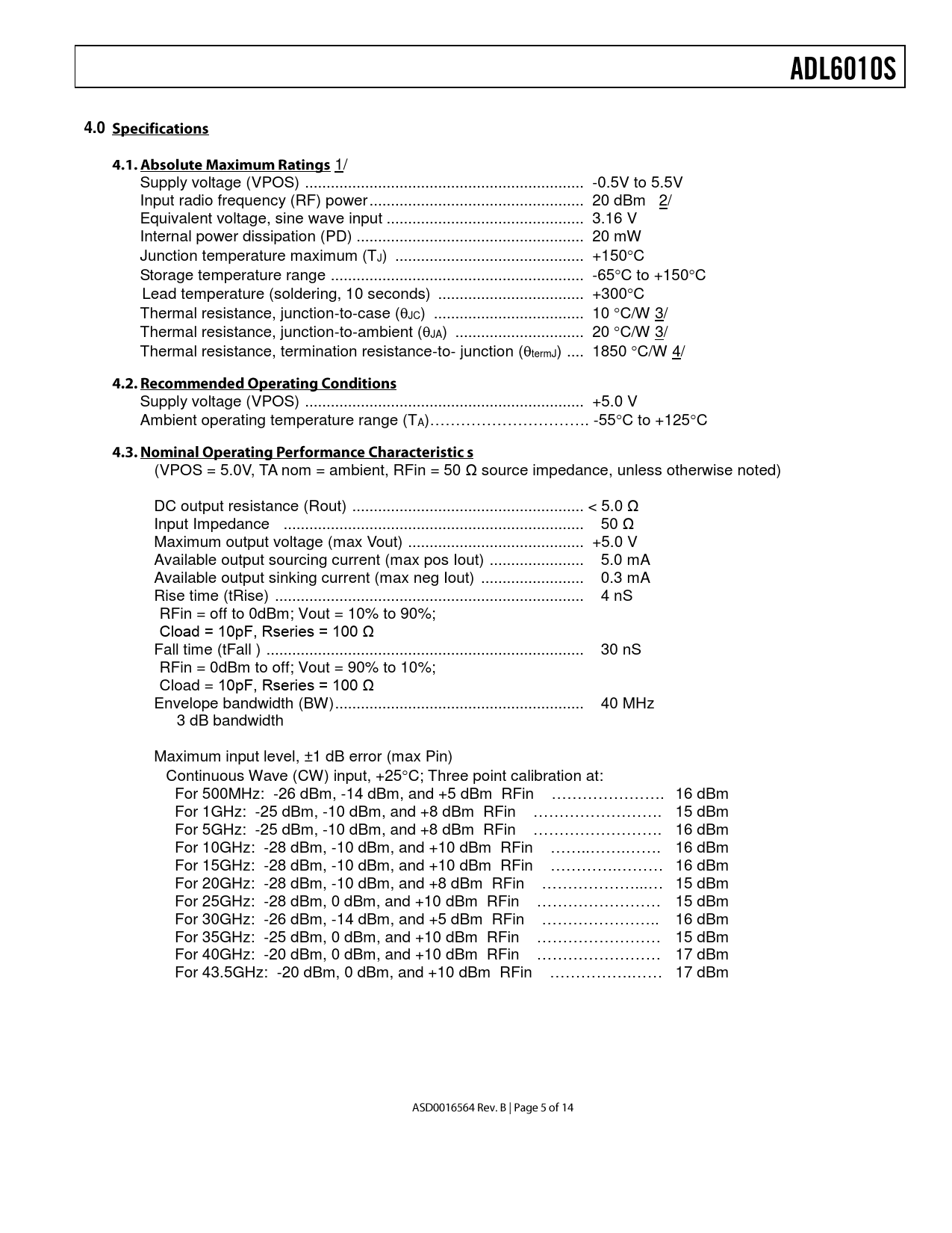 Datasheet ADL6010S (Analog Devices) - 5