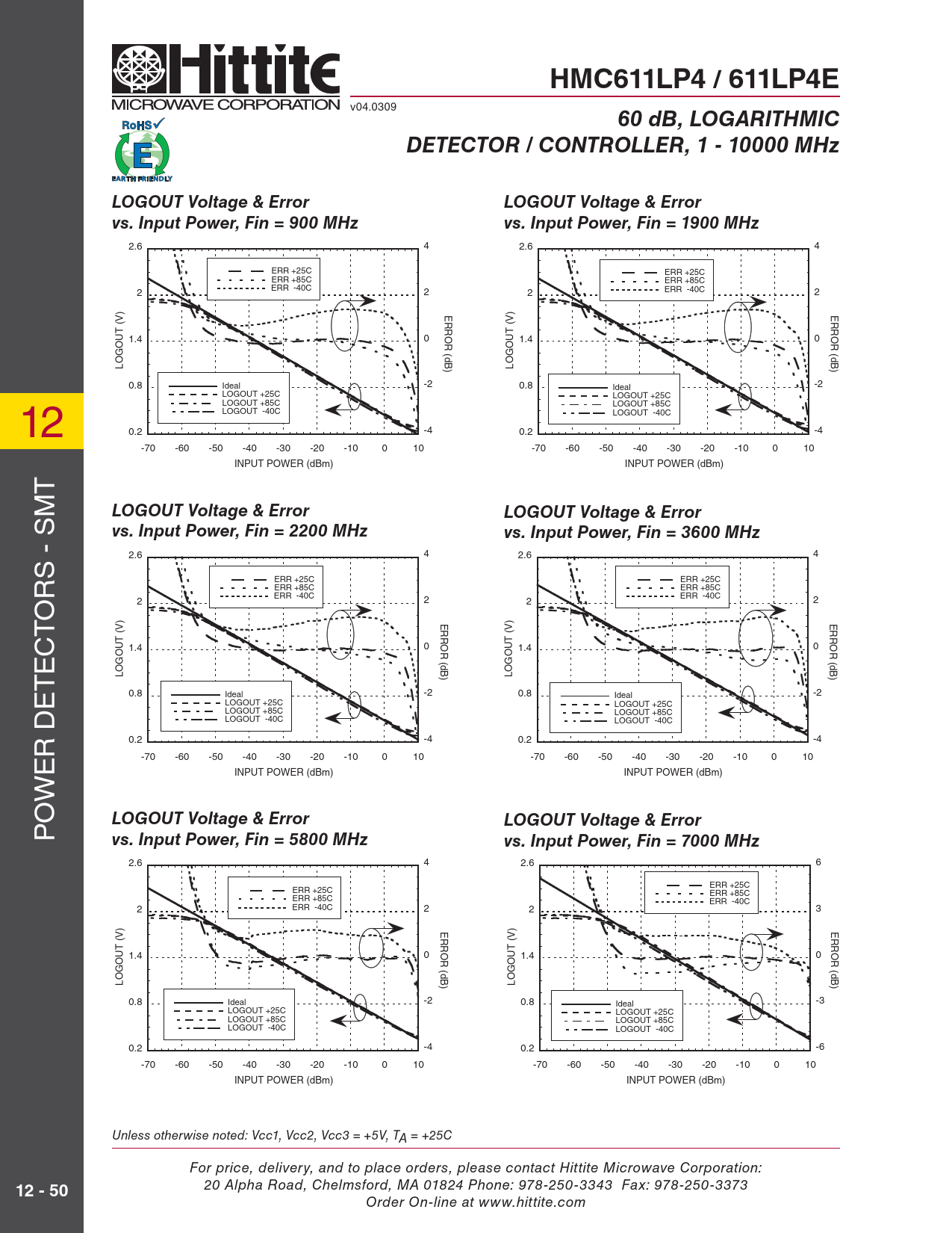 HMC611LP4 / 611LP4E. 60 dB, LOGARITHMIC. DETECTOR / CONTROLLER, 1 - 10000 MHz. LOGOUT Voltage & Error